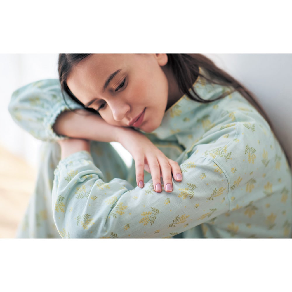 とても優しい色合いで、肌触りも良いです。1点だけ残念なのが、せっかく腕まくりできるように袖口にゴムが入っているのに、ゴムは一部なので(私の腕が太目なせい?個体差?かも知れませんが)1サイズ大きめを購入したにも関わらず、ちょっとしか上げられず家事はしにくいです。袖口全体をゴム仕様にした方が仕立てるのも簡単になると思いますので、そこだけ改良を望みます。