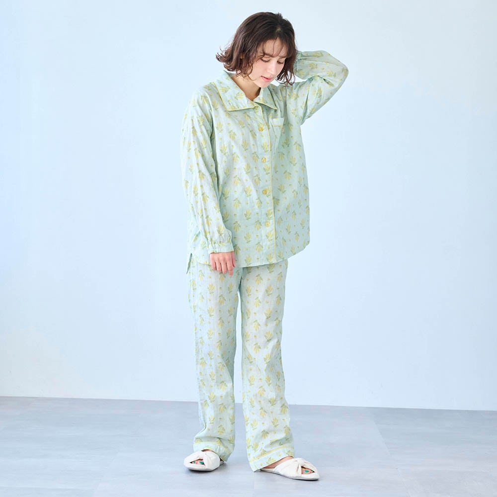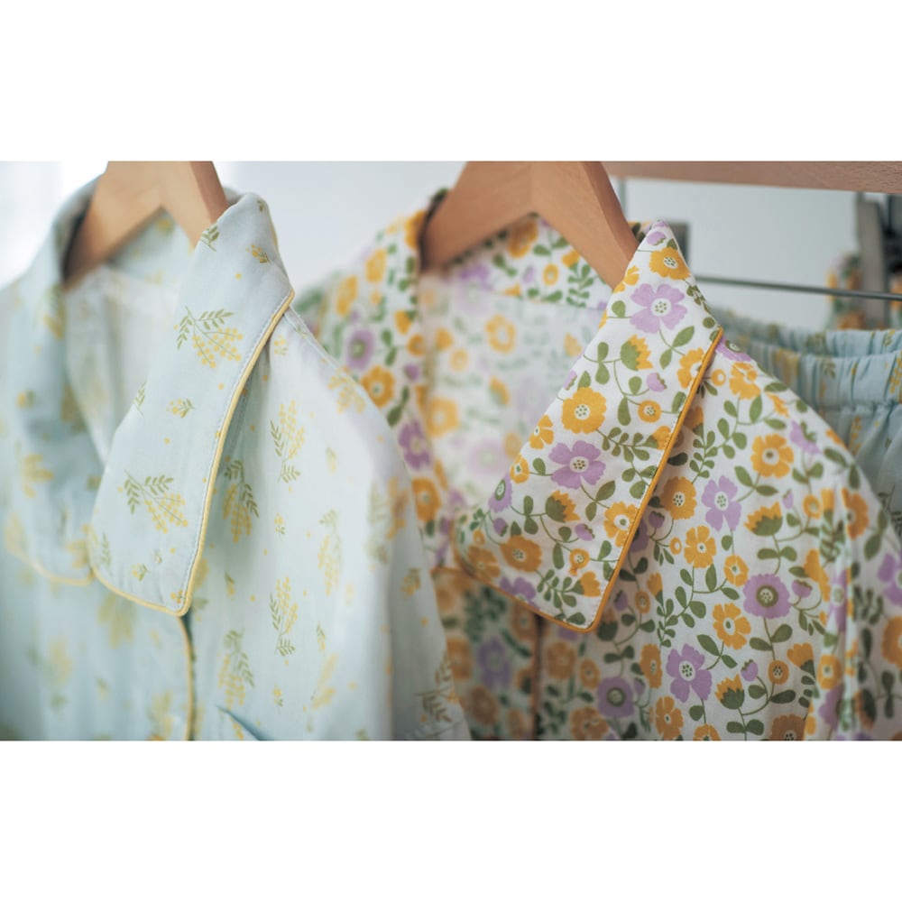 大好きなミニラボのパジャマ。派手かなと思いましたが、色合いも落ち着いていて優しく、何よりデザインが素敵。首回りも寒い日は、上までボタンをしめ、暖かい日はあけて大きな襟にしています。手首回りもちょっとしぼってあり、脇下も大きなカーブ。ガーゼのパジャマの2着目の購入ですが、やや薄手。 肌触りは最初はごわごわでしたが、着ていくうちになじんできました。