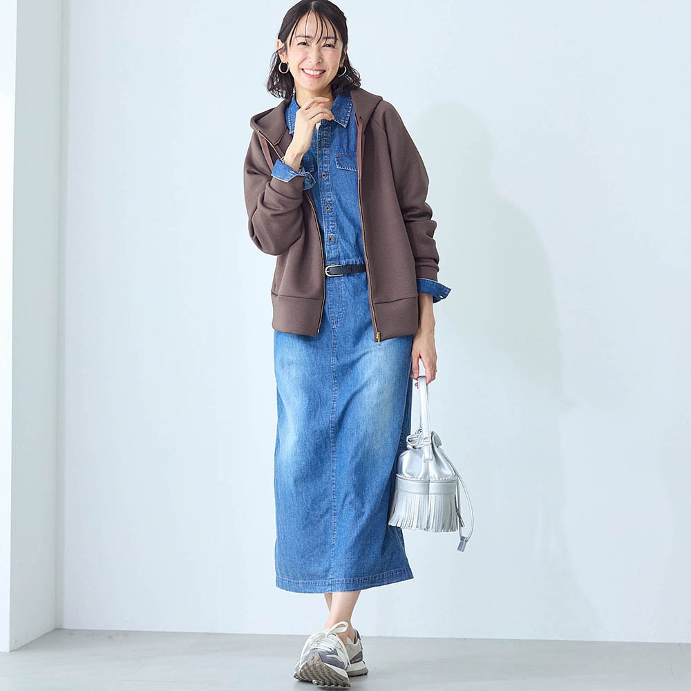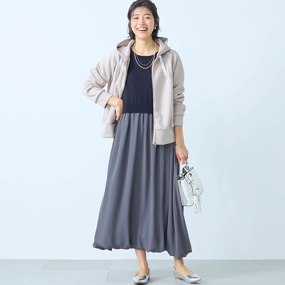 身長168cm、体重57kgでMでピッタリでした。袖丈も足りてるし、身幅にゆとりもあります。デザインも色も気に入って、他の色も買い足すか検討中です。 ただ、コーディネート例でモデルさんが着ていたワンピースがいいなと思って見てみると、着丈+8cmの特別サイズで売っていない…騙された気分です。あくまでイメージ写真なのかもしれませんが、丈が違えばバランスが変わって違うデザインになると思うので、代表の写真に使うのは違うのではないでしょうか。