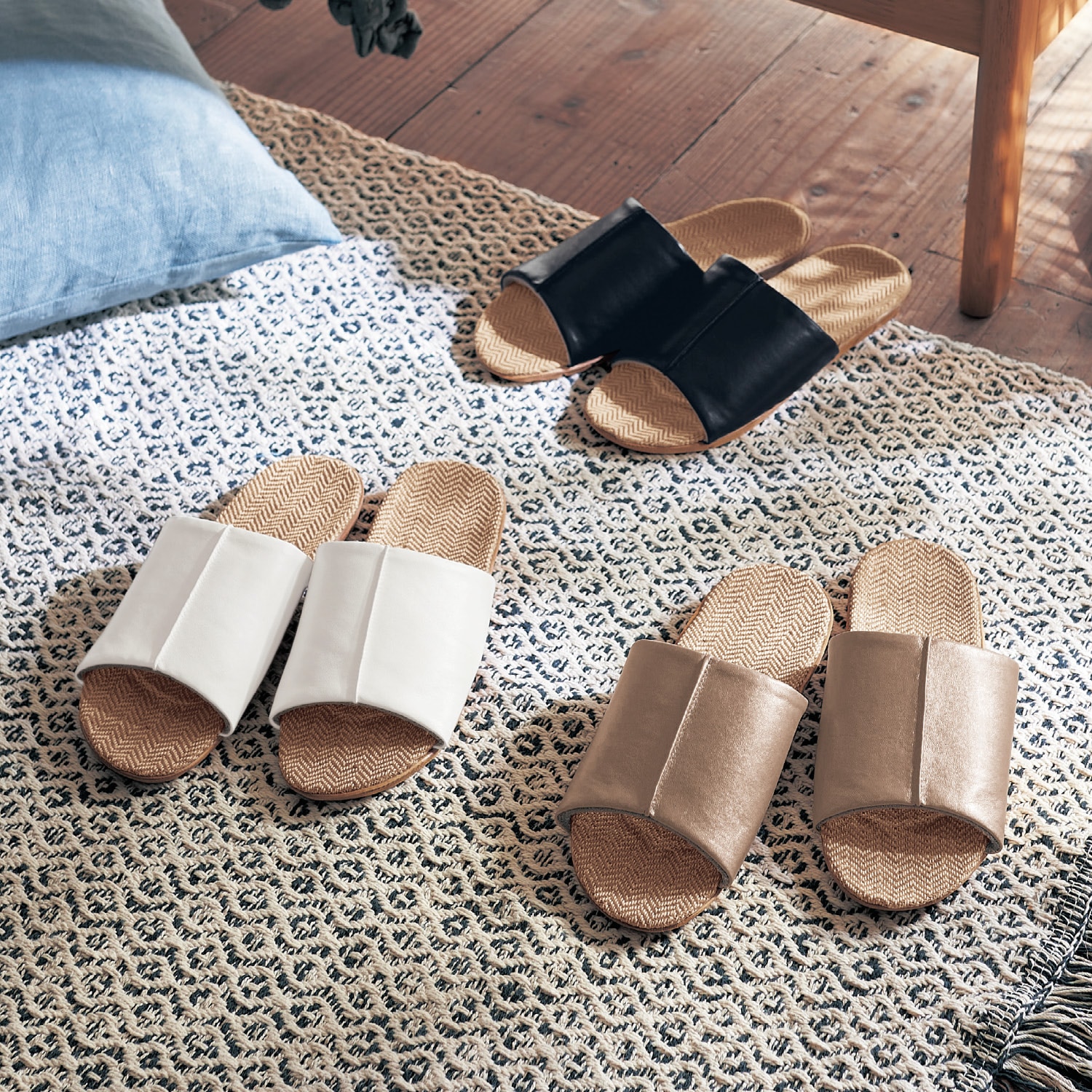 ソールが布ではなく、硬さのある仕様なので濡れても拭ける。水洗いも出来そう。