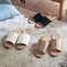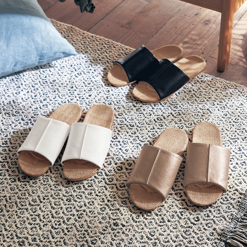 足のサイズは22,5cmです。なかなか足の形に馴染むスリッパがなく、最初はちょっとキツいかな?と思いましたが履いてる間に馴染んできました。シンプルでいいですが、例えば合皮部分にワンポイントで模様があっても可愛いかな?と思いました。
