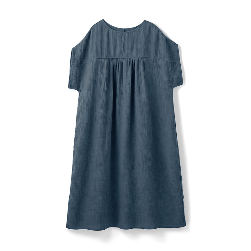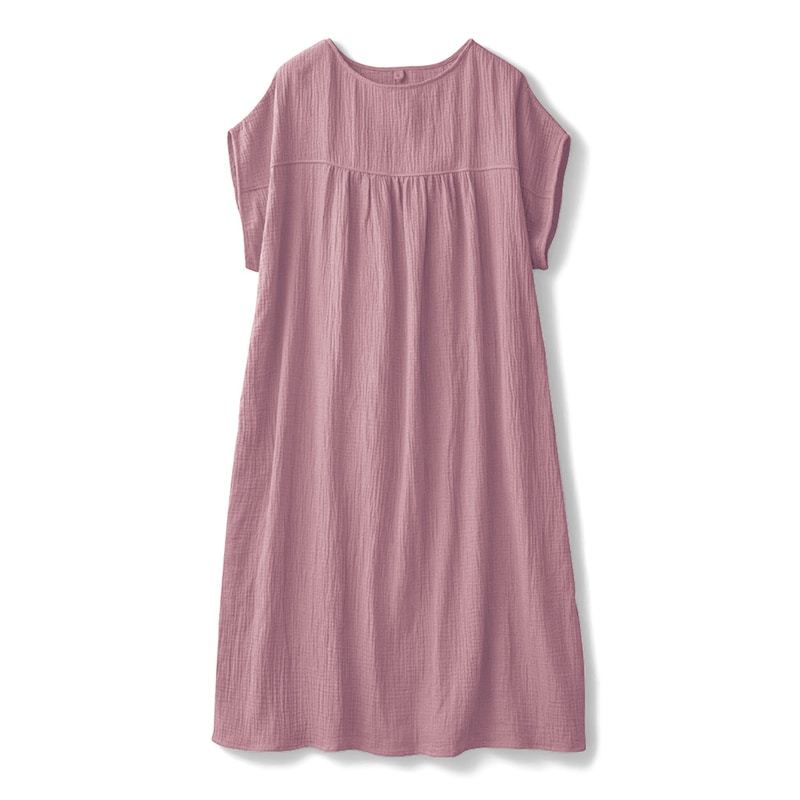 お風呂上がりに着用してます。素材が柔らかで嵩張らず着丈も長くて、とても心地良いです。下の方にあるボタンをとめると裾がパンツになるというアイデアが良く考えてある商品だと思います。ピンクが売り切れで紺色しか販売してなかったので、他の色もぜひ販売して欲しいです。