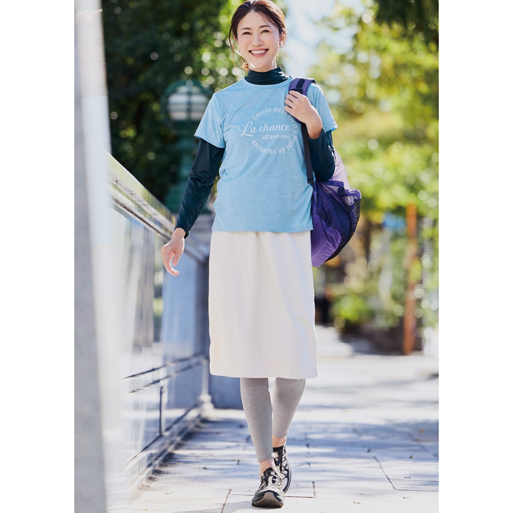 一泊二日のハイキングツアー用に購入しました。蒸し暑いこの季節で汗をかいてもすぐ乾き、少しの風でも吹けば、涼しさを感じます。長時間、歩くのでワンサイズ大きめを購入しましたが、緩さは感じられず、肌にフィットして、冷房にあたると寒さを感じるくらいでした