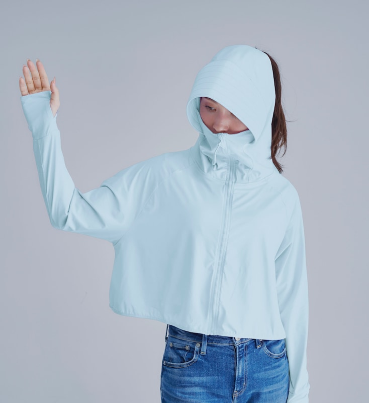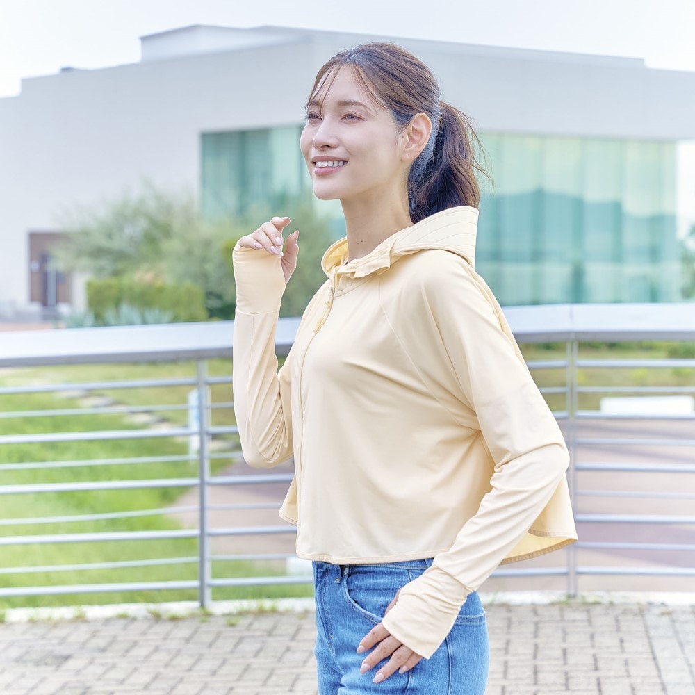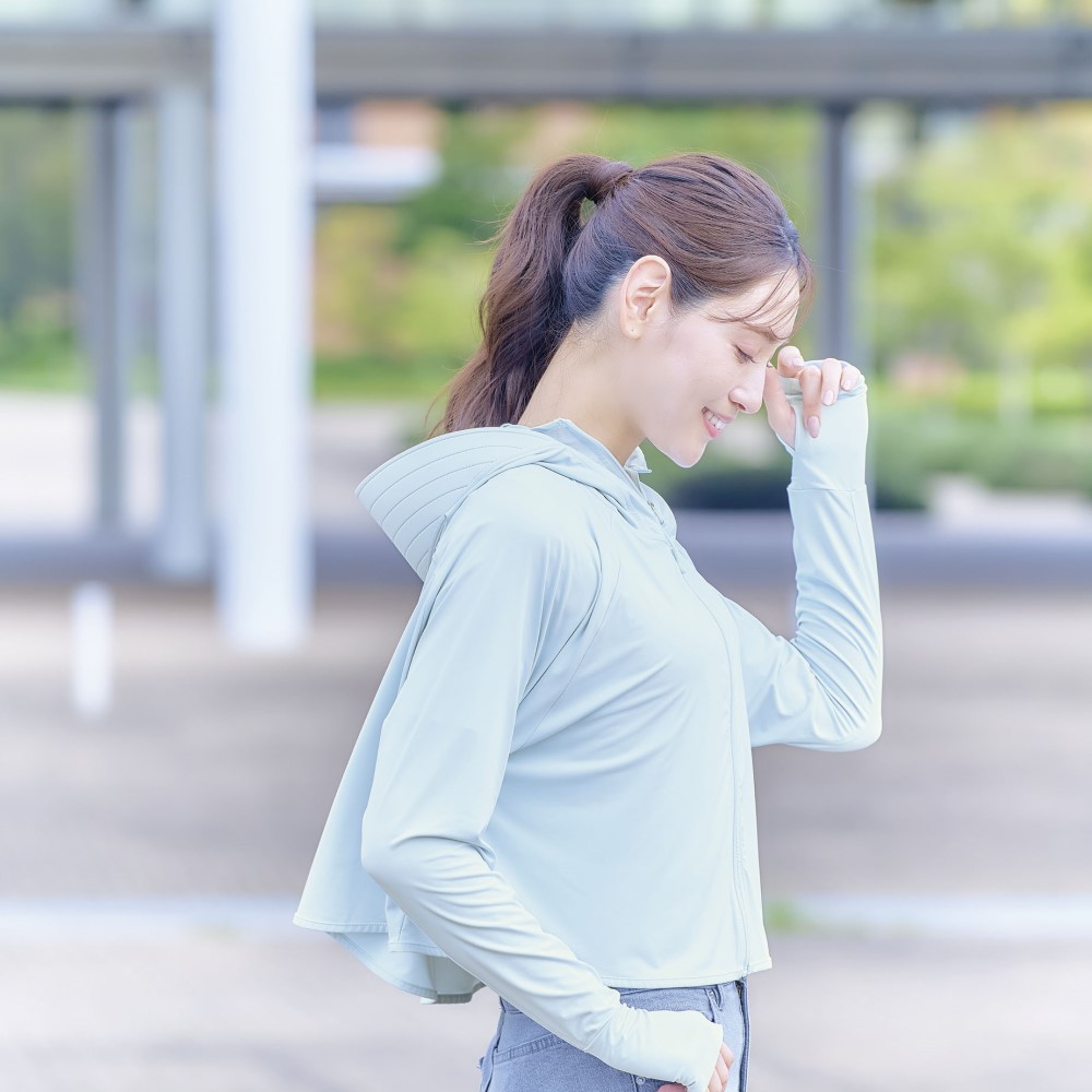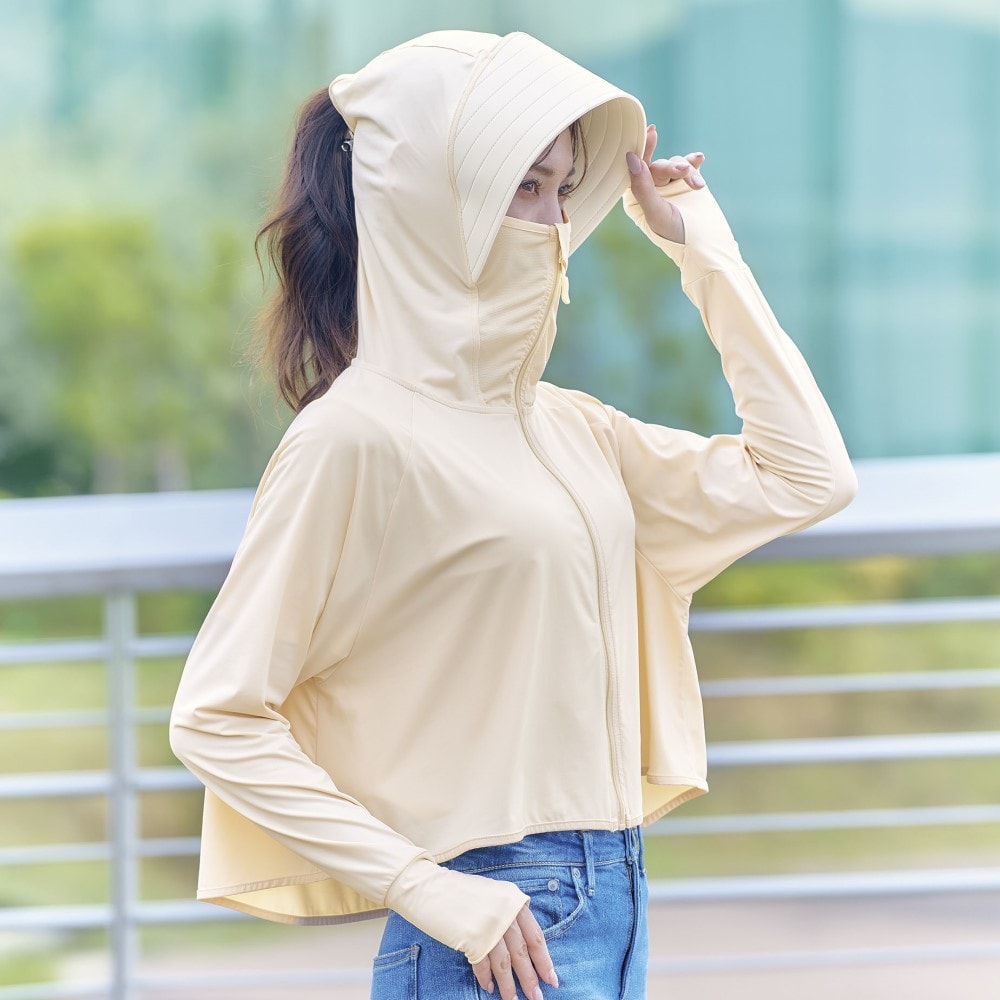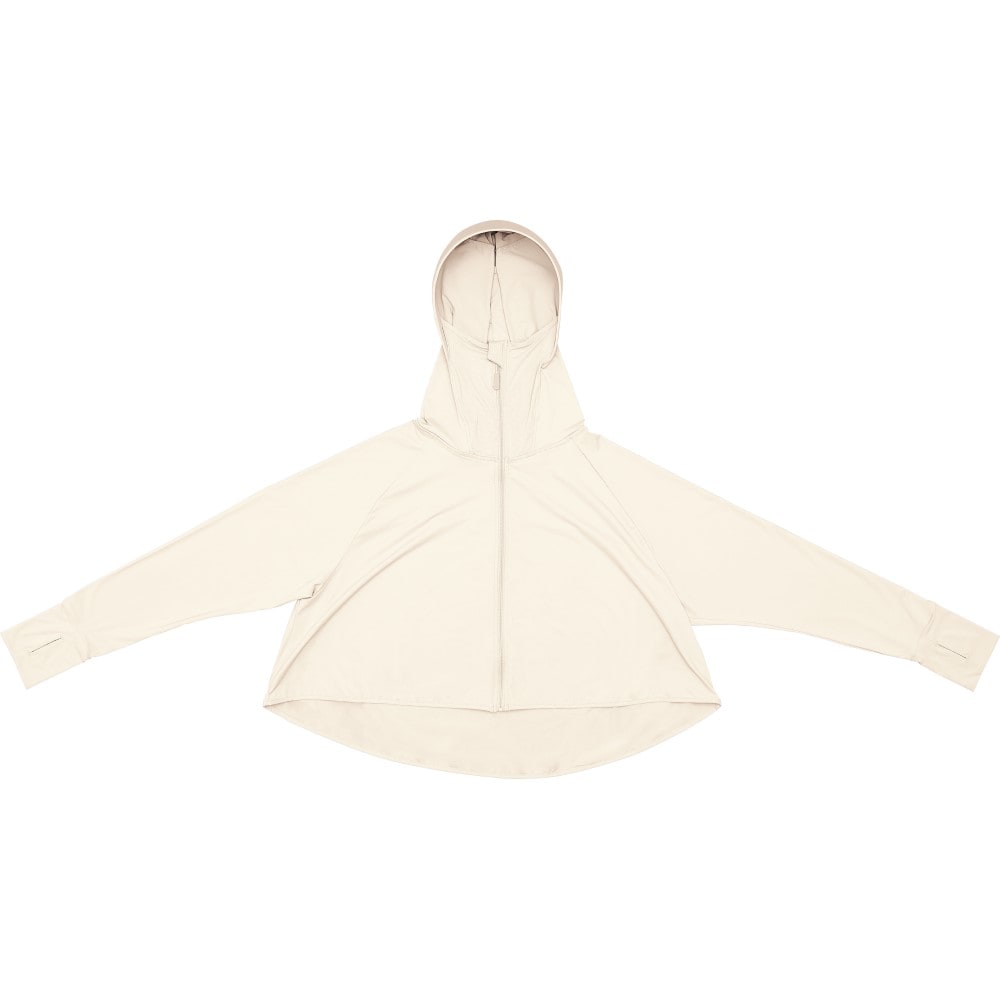 海や一日、外にいる時は頭皮が焼けてしまうので、フード付きのラッシュガードやUVパーカーを着用していましたが、風が強いとフードが脱げてしまい困っていましたが、こちらは縛った髪の毛を出せるので、フードが脱げる事もなく良いのですが、つばの部分が