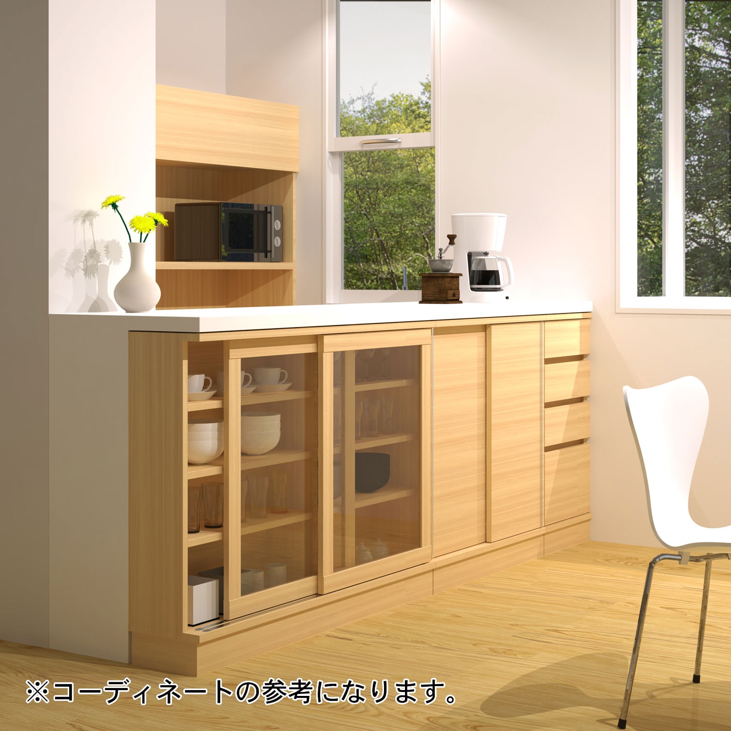 ●主材/天板・前板:合成樹脂化粧繊維板(ポリエステル)、引戸:ポリカーボネート、その他:プリント紙化粧繊維板