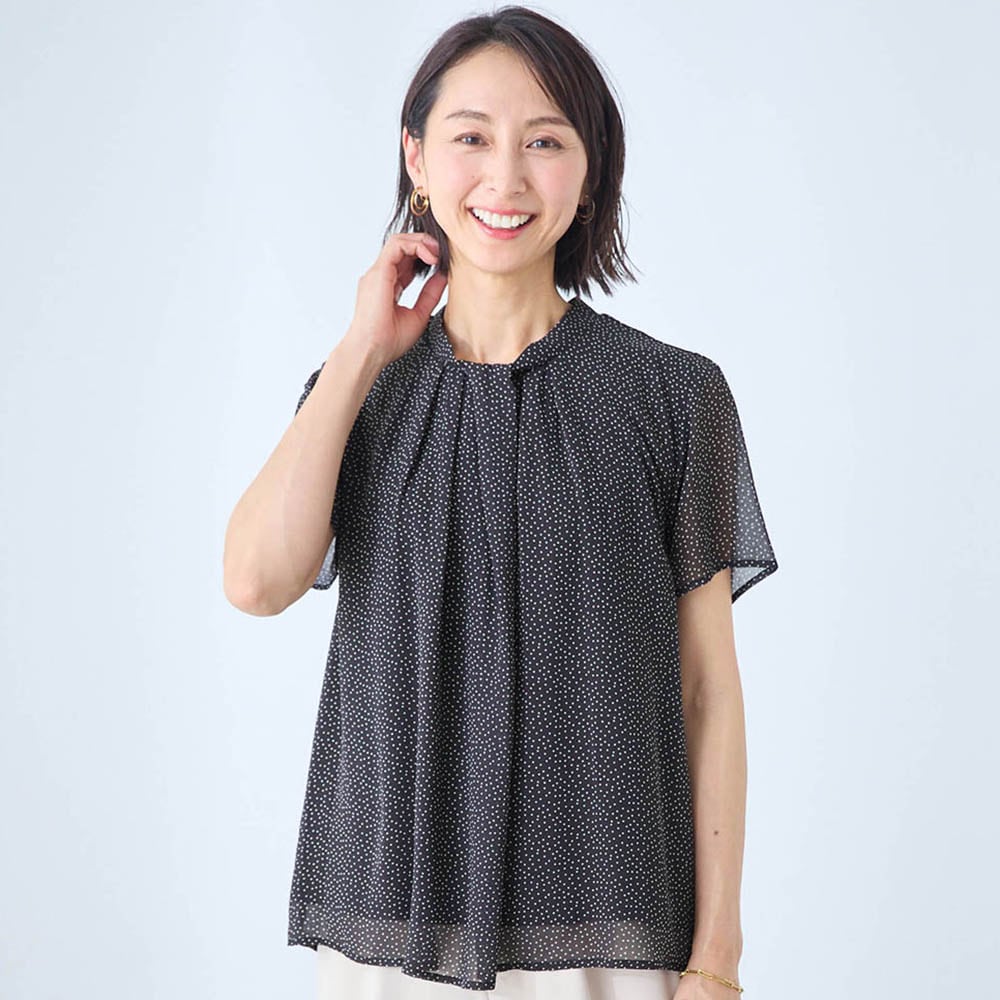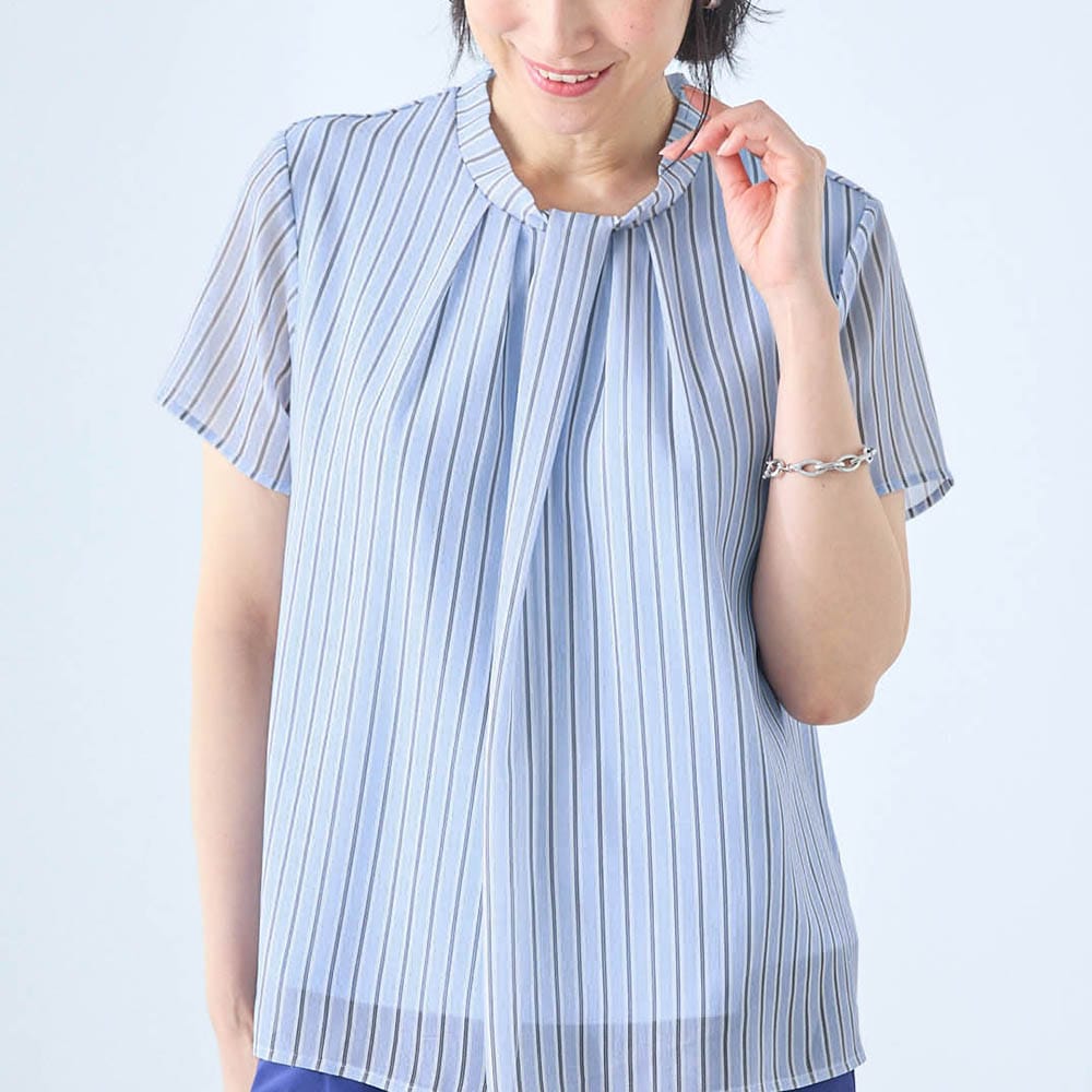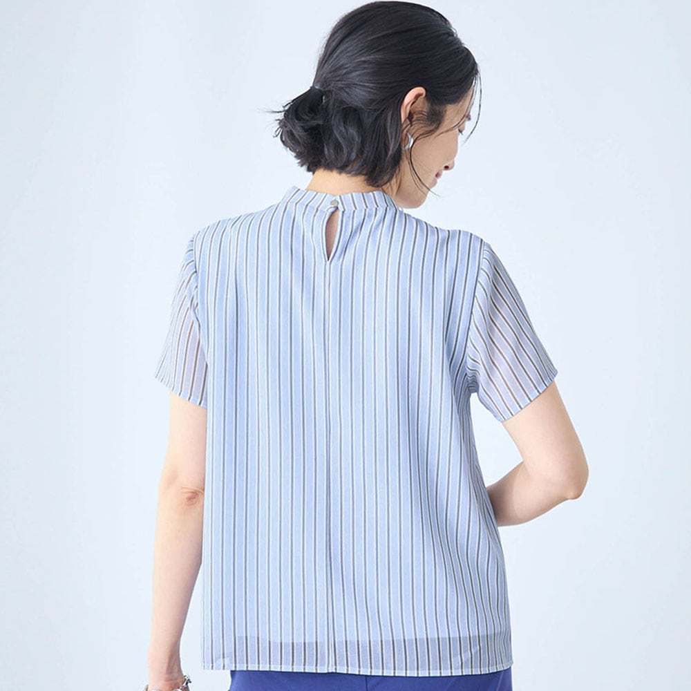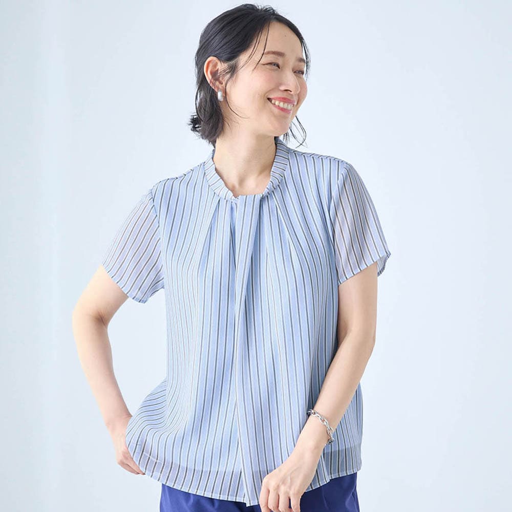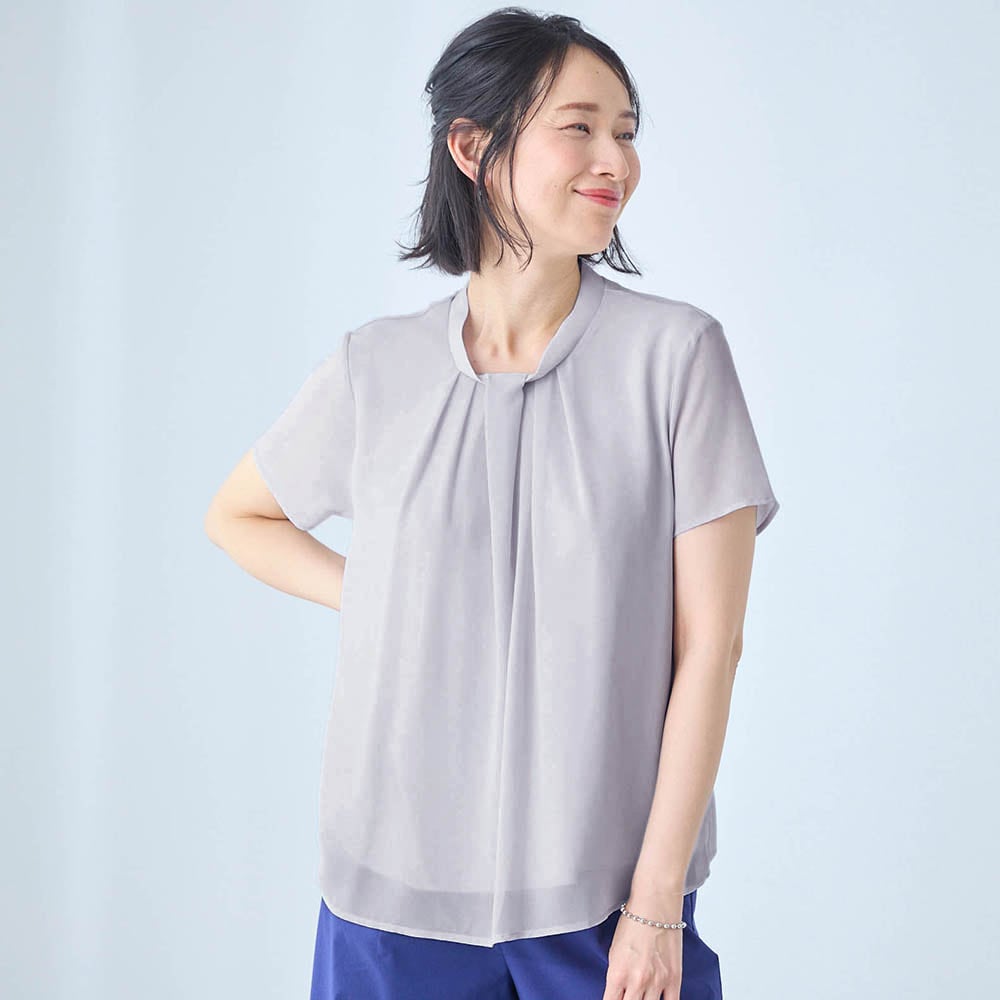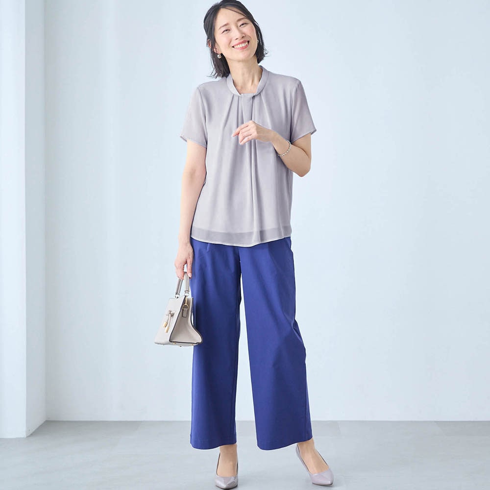 夏に化繊のブラウスは苦手ですが、裏地がサラリストで快適。透ける心配もないので着やすい。 カジュアルにも、セットアップでキレイめにも合わせられ、夏でもTシャツNGのきちんとした場面にも使えそうです。
