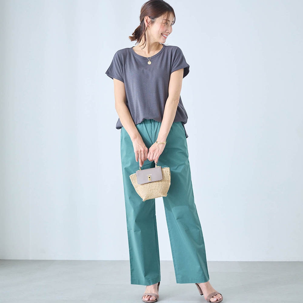 身長168センチ、大抵のパンツは丈が短いので、TLサイズを購入したところ、足の甲に触るくらいの長さだったため、Lサイズに交換してもらいました。Lは足首が出るサイズ感ですが、暑い時期に履くのでちょうど良い感じです。 グレーでもベージュでもない薄い色、なかなか無い色で気に入りました! 形もきれいです。太もも周りにもゆとりがあり、履いていてストレスがありません。ポリエステルは肌触りが苦手なのですが、本商品は内側が綿素材とのことで、綿好きの人にも受け入れられやすいと思います。