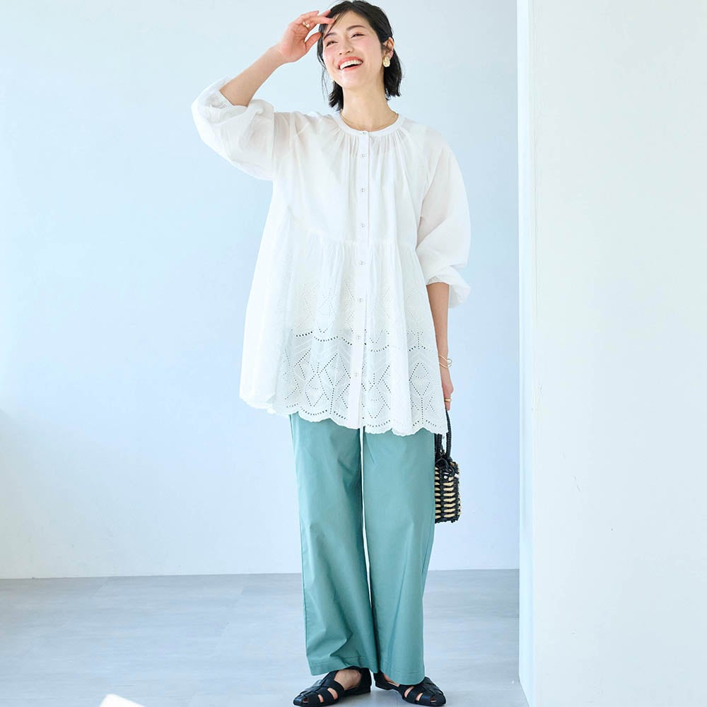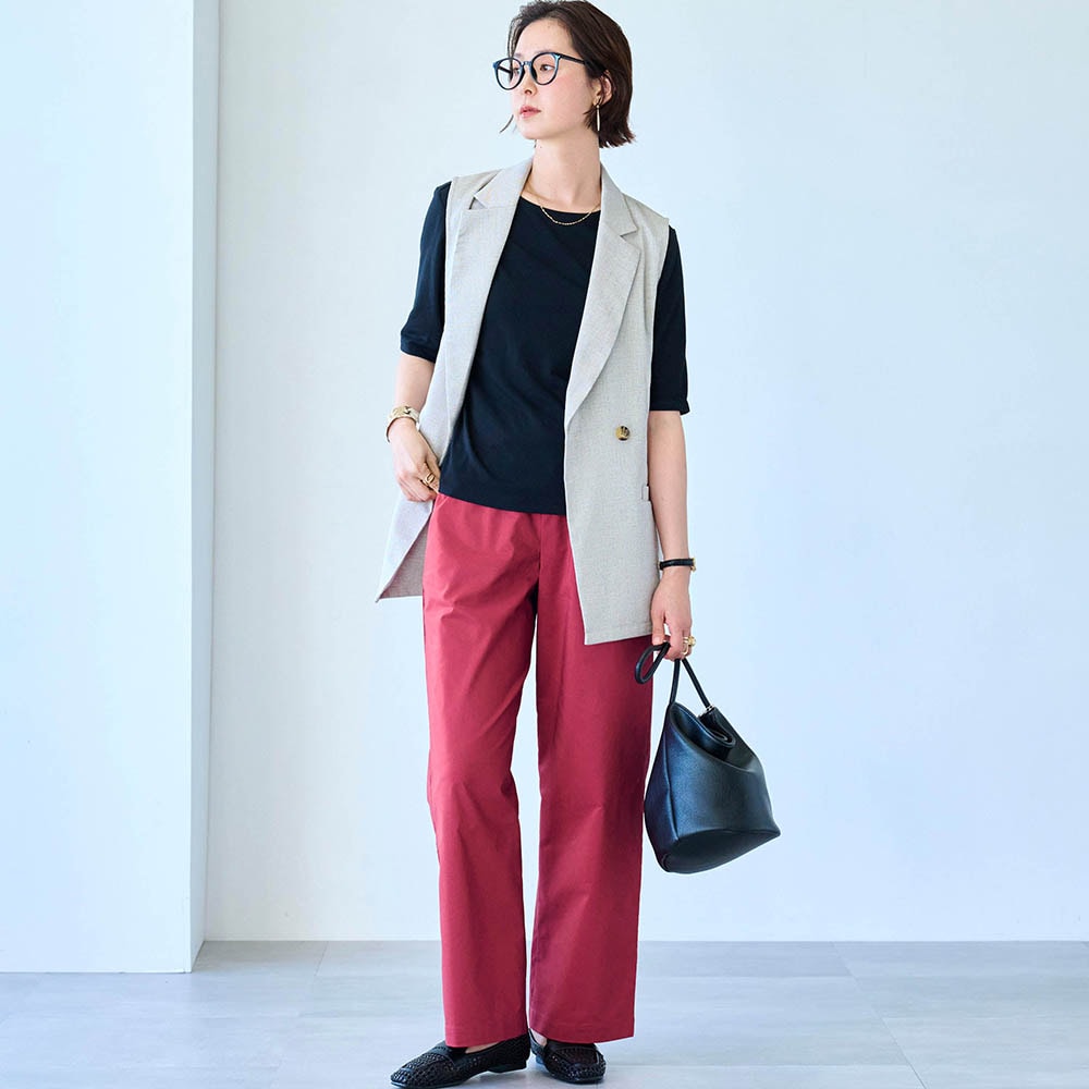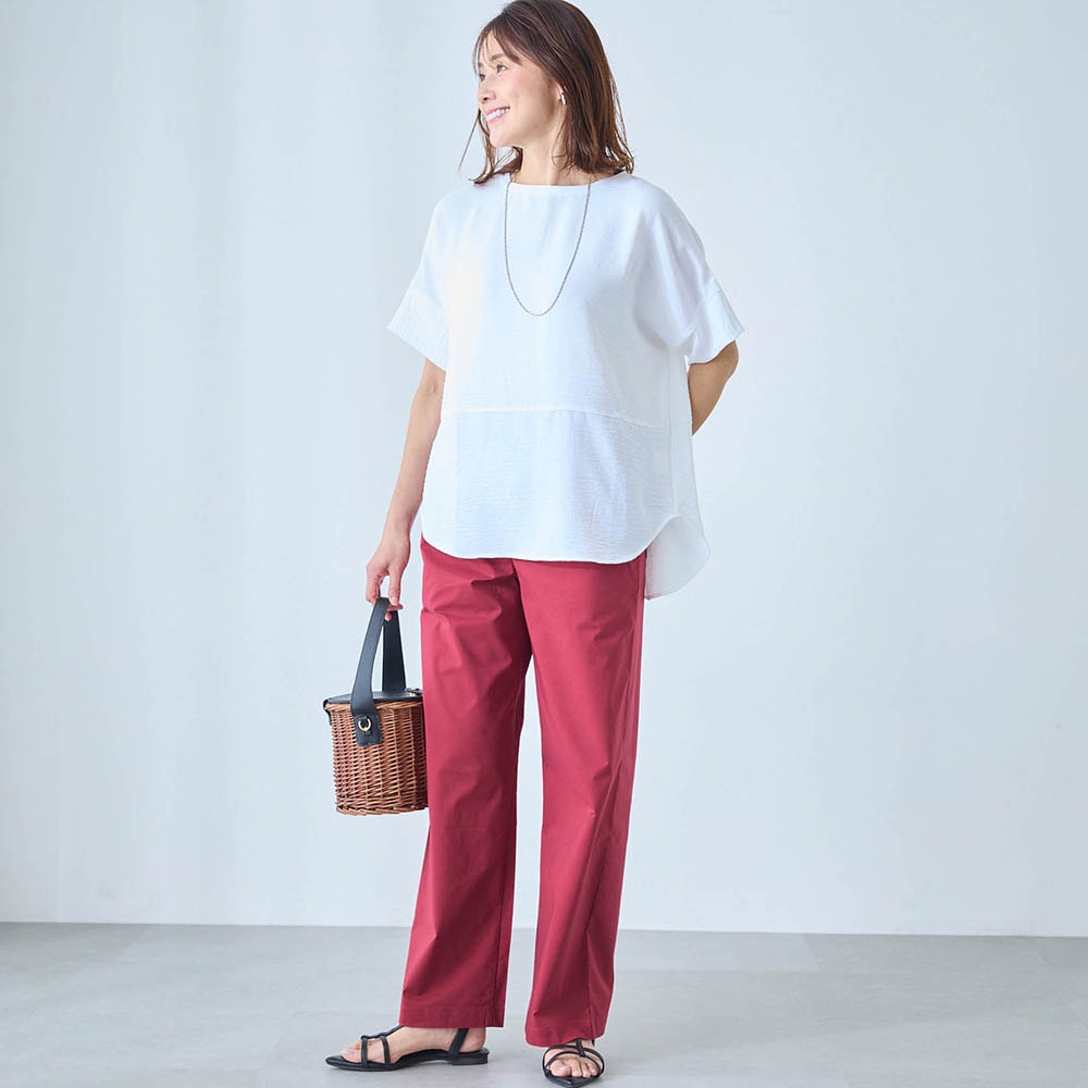 仕事ではカジュアルな服装なのでジーンズをはいていましたが、夏はやはり暑く、チノパンなども汗で張り付いて不快でしたが、これはそんなことはなく快適に過ごせました。Mと迷いましたが、スニーカーでちょうど良い丈の長さでした。