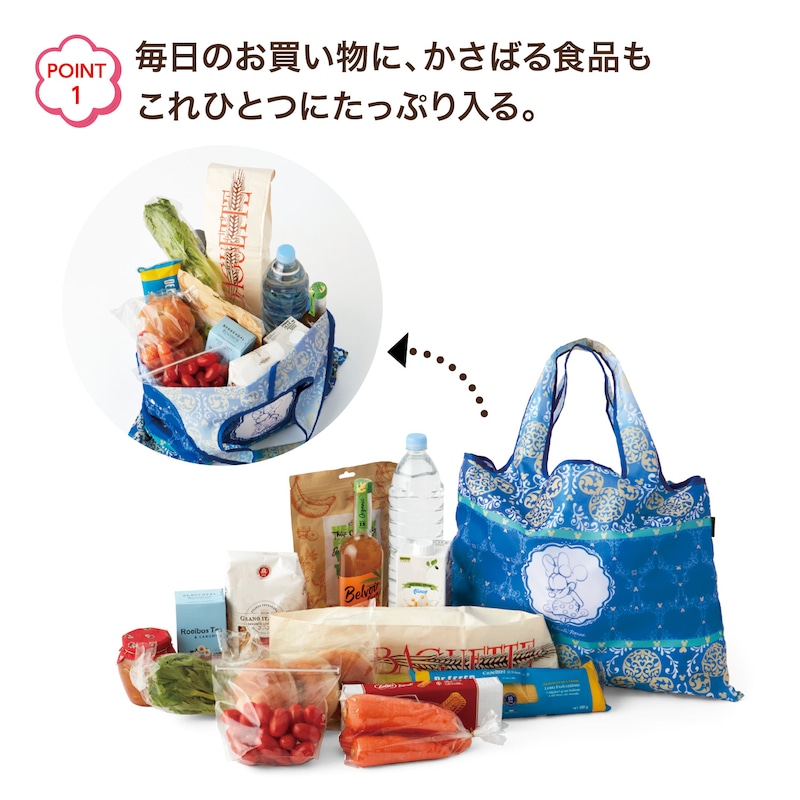 まず、ディズニーのキャラクターが良い。いくつになっても可愛いものは心をウキウキさせ、持ってるだけで楽しい気分にさせてくれます。発色も良く綺麗でデザインによって感じが違うのでいくつも持っていたいエコバッグになってます。また、袋の脇にボタンが付いていて底の広さを大きくすることも出来るので買ったものによって変えられるのもGood