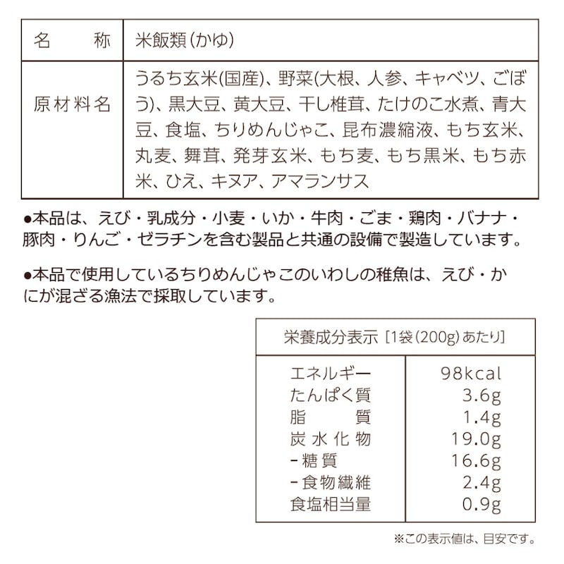 風邪の治りかけの時に食べました。豆や雑穀が入っていておかゆより食べ応えはありましたが、これだけでは薄味なので塩こぶや漬物と一緒に食べました。一種類しか入っていないので続けて食べるには飽きてしまうので、2,3種類あるといいなと思いました。