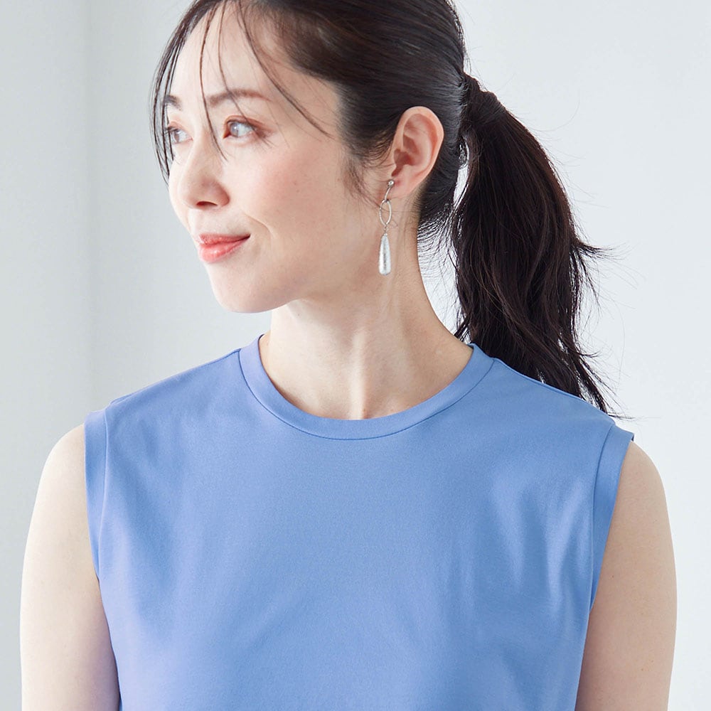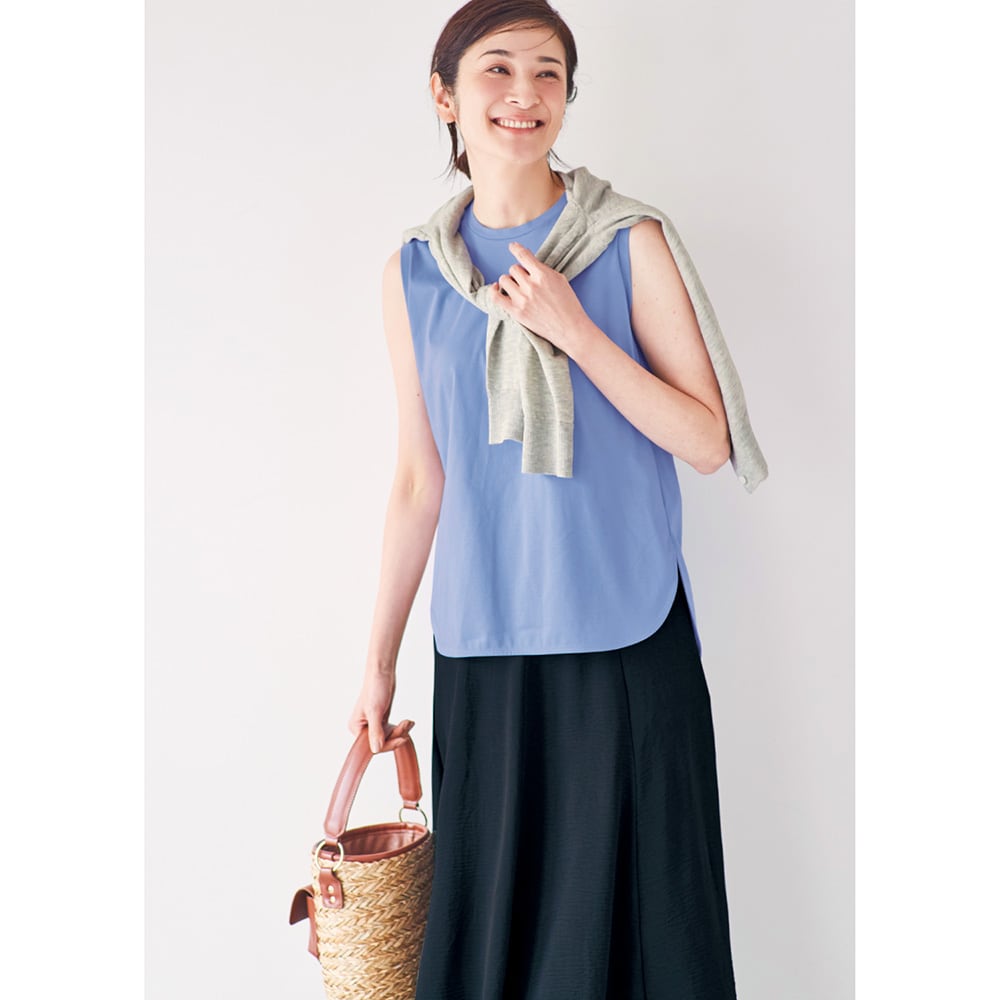 さらっとしていて肌触りはよさそう。胸回りが少し大きくて風が通りそうと思いましたが、その割には首まわりが詰まっていて、真夏には暑いかもしれないと思いました。(季節外れの今12月に購入したので、参考にならないコメントでごめんなさい)