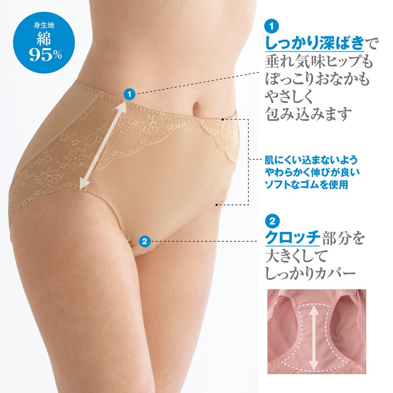 ●綿95%でハミ肉を押さえる脇高タイプ