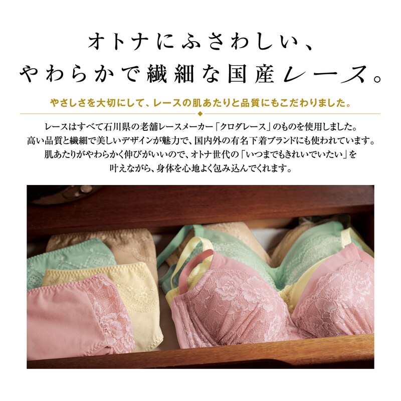 ブラに疲れたオトナ世代ももう一度着けたくなる、快適さを追求したブラ&ショーツです。