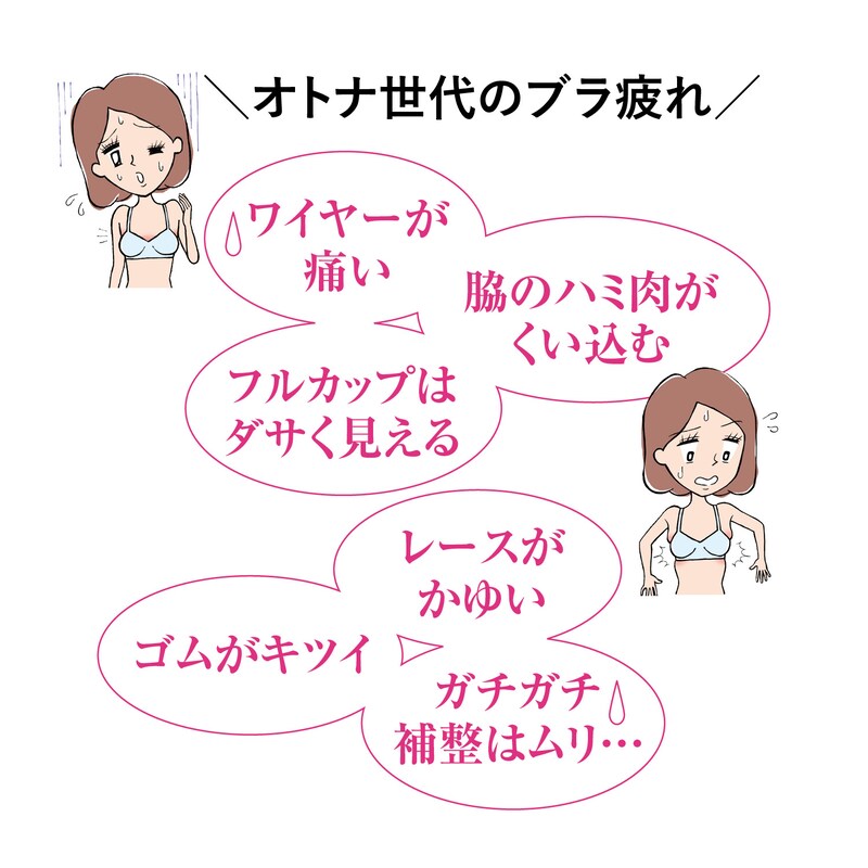 ワイヤーが痛い、ワキのハミ肉がくい込む、レースがかゆいなどなど。