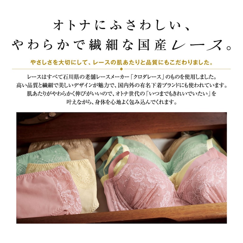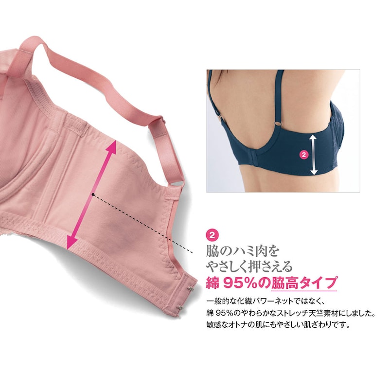 ブラ&ショーツは、すべてベルメゾンを使用しており、今回この商品を初めて購入しました。ノンワイヤーが苦手なのですが、でもワイヤーが痛いのは嫌という私にピッタリ!