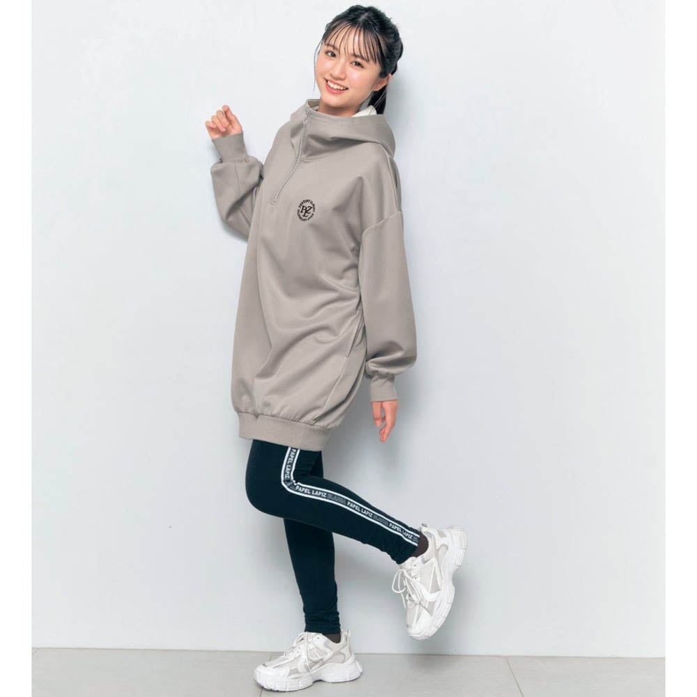 画面ではもっとベージュに近い色に見えたのですが、実際は薄いグレーです。これはグレージュというのでしょうか…。最初見た時、工事の業者さんが着ている作業着の色だと思いました。袖と裾がリブになっていてますます作業着というかジャージというか。しかし、着てみるとかわいいです!袖と裾のリブのお陰でダボダボにならないのでもうワンサイズ大きい方が長く着られて良かったと思います。今回のサイズは145センチ50キロの娘に丁度ピッタリという大きさでしたので。