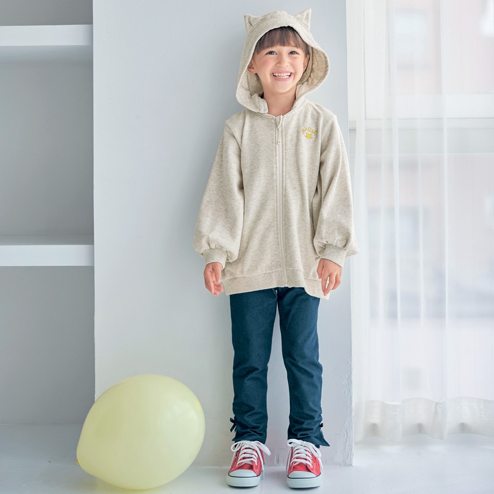 猫耳フードがかわいい!ハロウィンにも日常にも使えるデザインがいい。フードの付け外しは少々面倒ですが、外せば学校でも使えるし、本格的に寒くなる前のちょっとした羽織に。