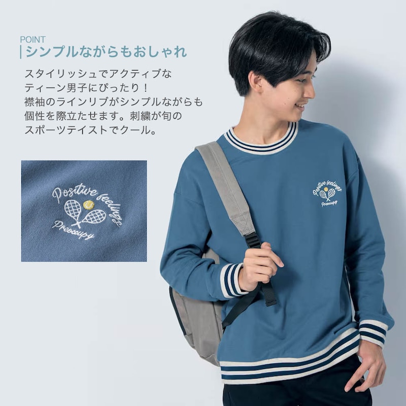 スポーツ刺繍入りラインリブミニ裏毛長袖プルオーバー 【子供服】