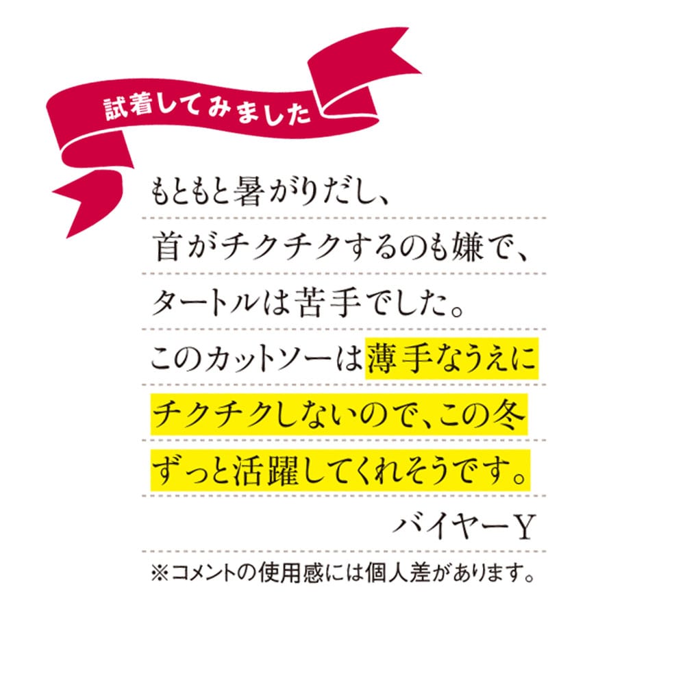 それ以外では薄手でとても暖かく体にピッタリでニットのインナーに重宝しています。
