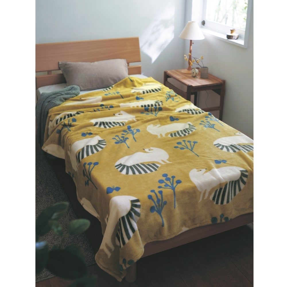 厚みがあり、暖かいです。色が明るいので気分があがります。先に買ったハーフサイズがよかったので大きいサイズを寝る時用に追加で購入しました。ハーフサイズはソファに置いて使っており、ちょっとしたひざかけやお昼寝に良い感じです。布団で使う大きいサイズは、可もなく不可もなくといった感じ。暖かいですが、同じくベルメゾンさんで買った西川のフクロウ柄のニューマイヤーの方が薄いですが軽くて夜寝る時には好きです。