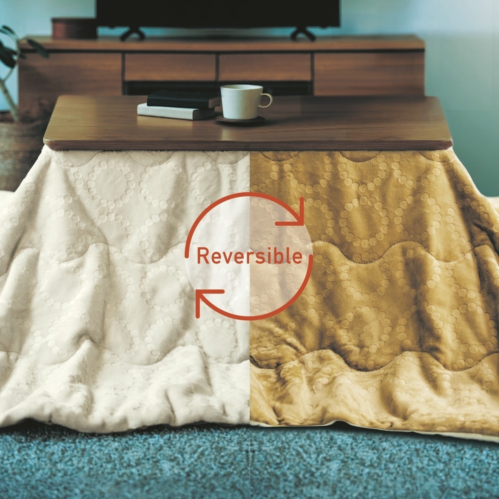 リビングはダブルサイズの毛布を掛けていますが、今回はこたつ布団がセール価格だったので、試しに購入してみました。