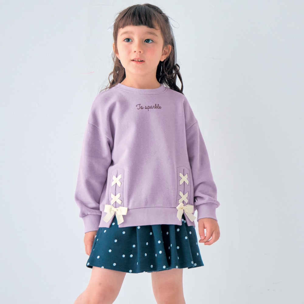 薄紫にリボンと娘の好みにピッタリで購入しました。届いた品物を見た時可愛いーーーー!と大喜び。身長120センチ弱で130を購入しましたが、チュニックのように着れて可愛いです。1番心配してたお洗濯でのリボンのへたりですが、全然崩れませんでした。(スウェット生地の方が思いの外しわっとなりましたが許容範囲です)