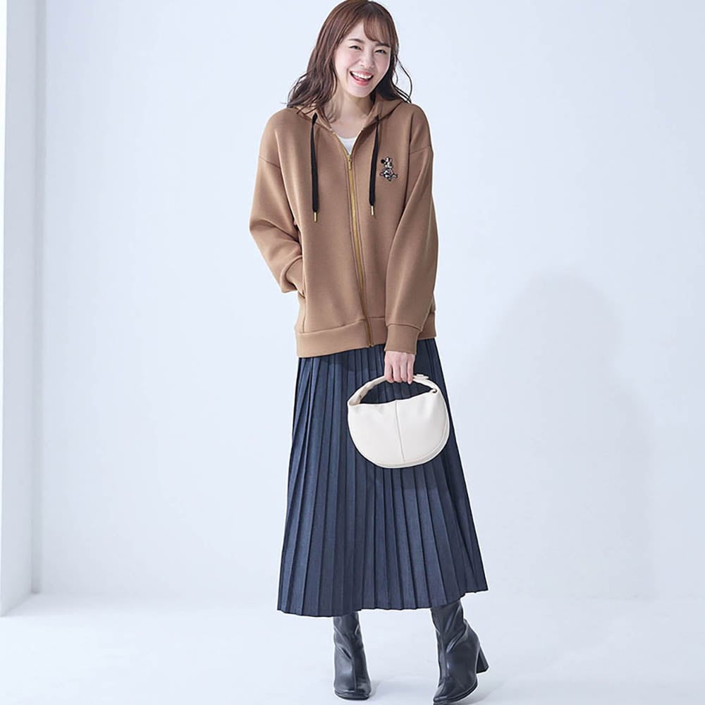 きれいめなダンボールニット素材で、大人っぽく仕上げたパーカ。いつものカジュアルスタイルを格上げします。