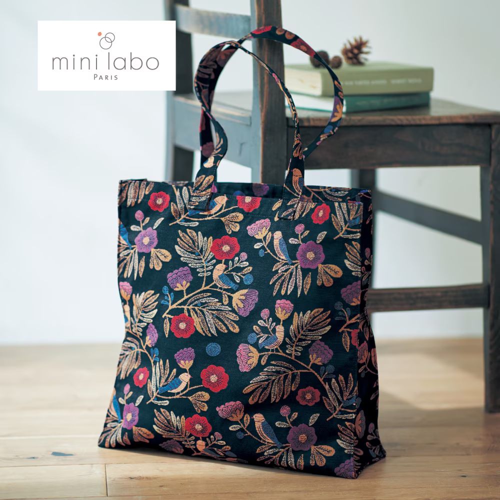 今までと違う大人向けの、おしゃれシックでかっこいいバッグで、紺地に赤と紫とベージュが映えて美しいです。一点、鳥の模様だけ惜しいので星1つ➖です。大きく柔らかいけど作りはしっかりで、持ち手の強度も裏地の縫製もOK。持ち手が長くて肩からかけられます。このバッグを肩からかけて、颯爽と街を歩きたい(笑)