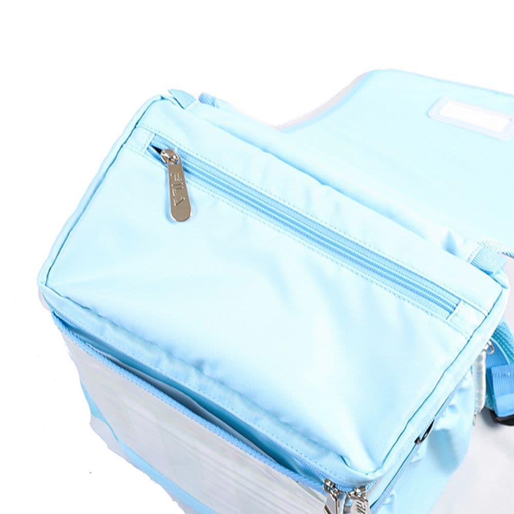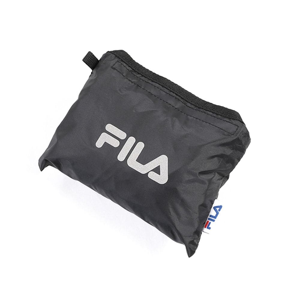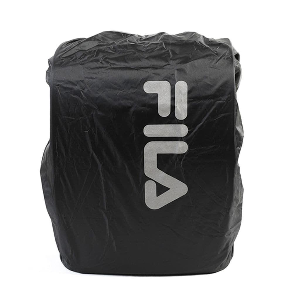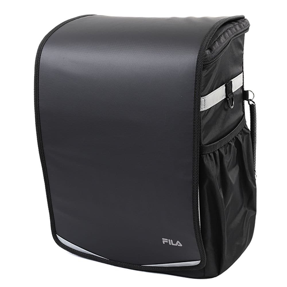 レインカバー:付属のレインカバーの「FILA」ロゴがリフレクター(反射)になっています