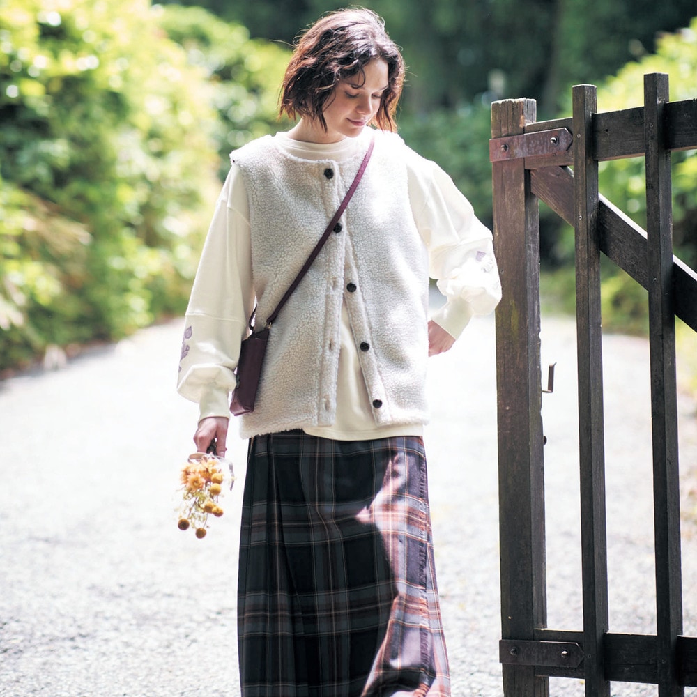・ふんわりしたバルーン袖にシックなカラーの刺繍がアクセント