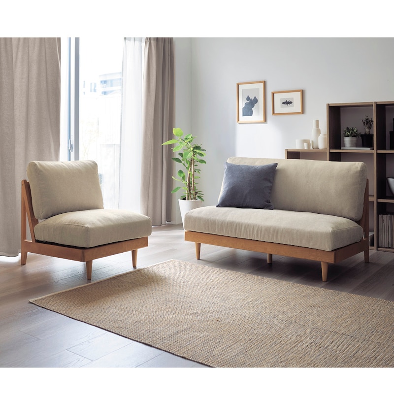 限られた広さのリビングなので、ソファーとローテーブルを置くスペースを測り随分考えました。アームなしの二人掛けで大きすぎないこと、あまり重すぎないで移動ができそうなこと、カバーを外して洗濯機で洗えることなどで選びました。組立してもらい助かりました。ネジがたくさんあり一人ではできません。