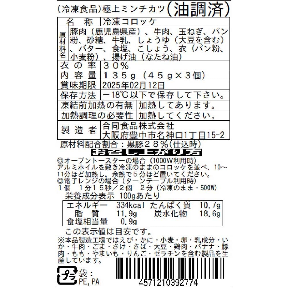 上記の4種類を3個ずつのタイプの物を注文しています。どれも美味しいですが、今回は「ミンチカツ」を物凄く食べたくなって、ぜーんぶ、ミンチカツのタイプを注文しました。簡単調理で本当に美味しいです。