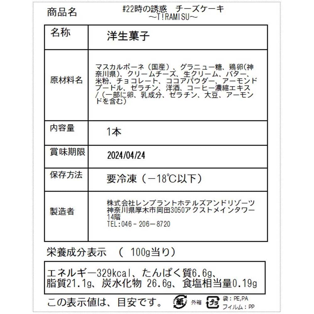 22時の誘惑 チーズケーキ ~T!RAMISU~