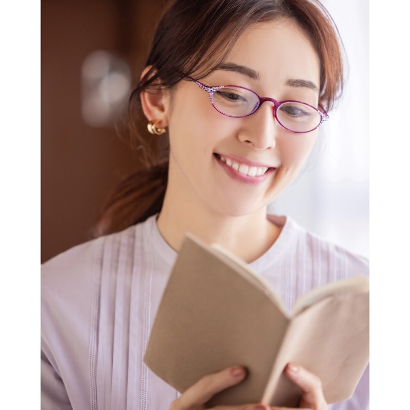 ●主材/レンズ:プラスチック、フレーム:TR-90(ポリアミド樹脂)、装飾:クリスタルガラス、合金