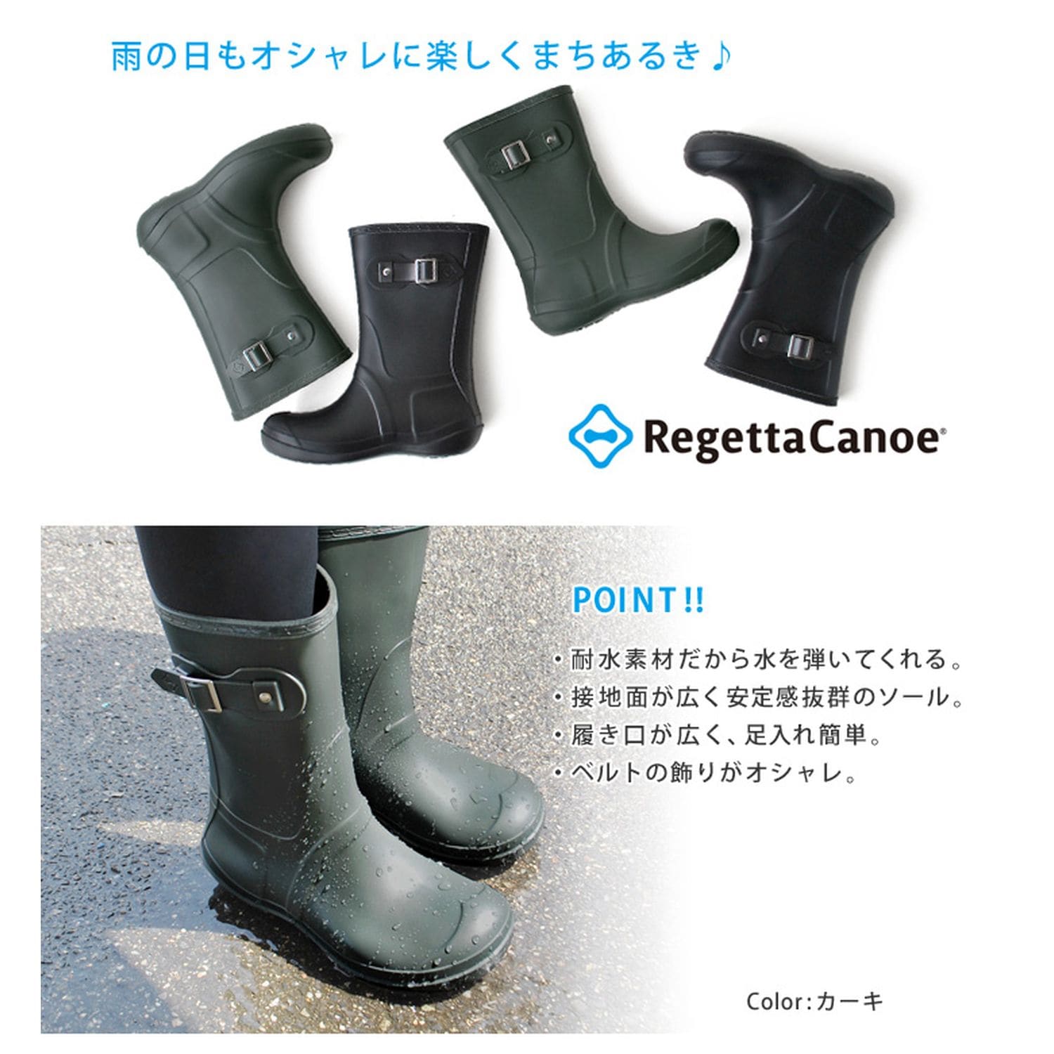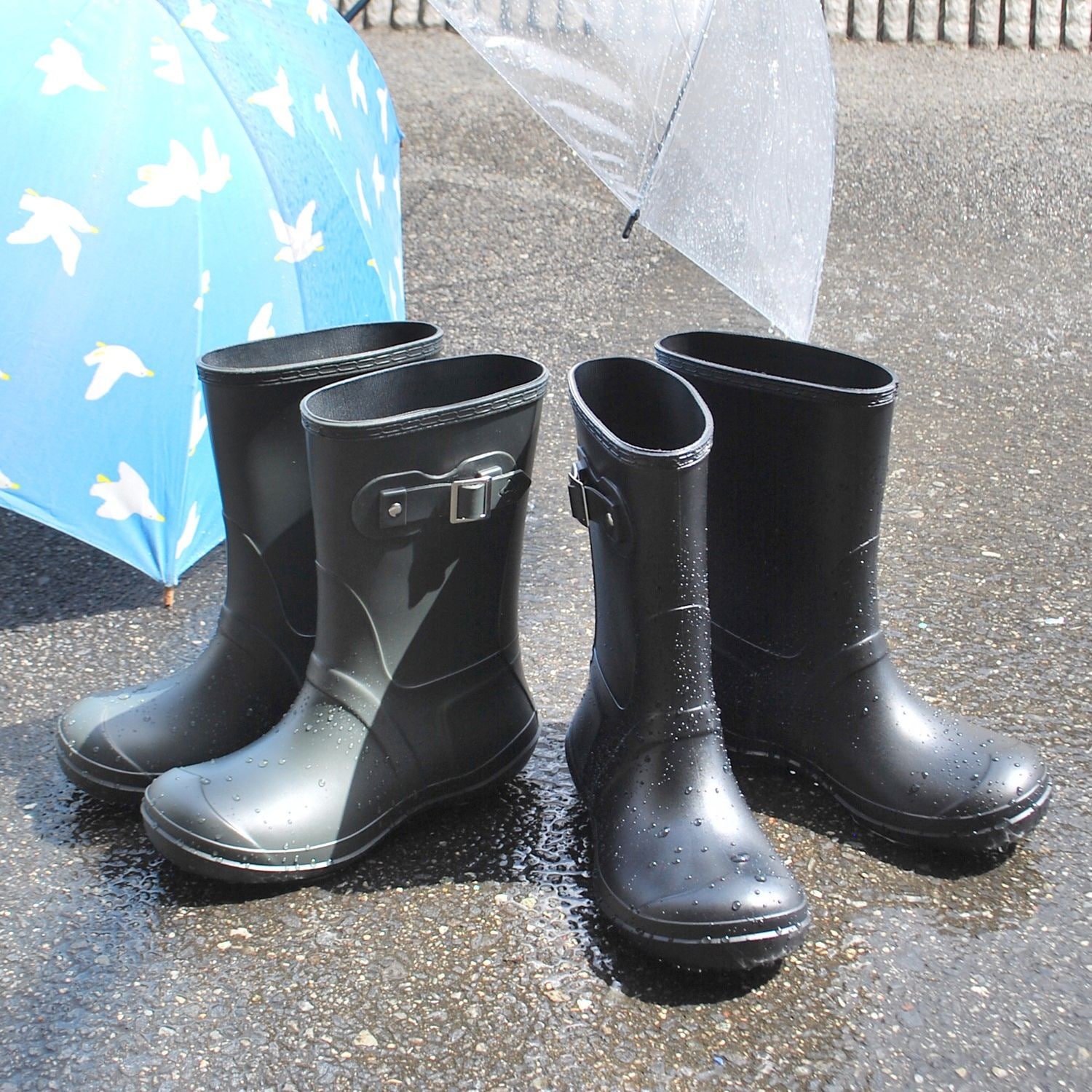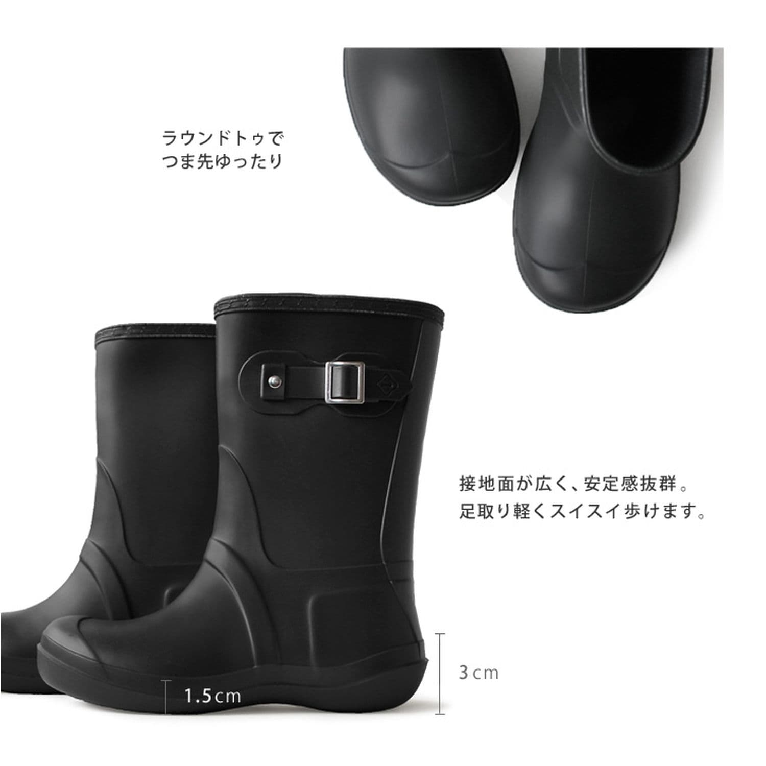 つま先ゆったりレインブーツで、雨の日も楽しく街歩き