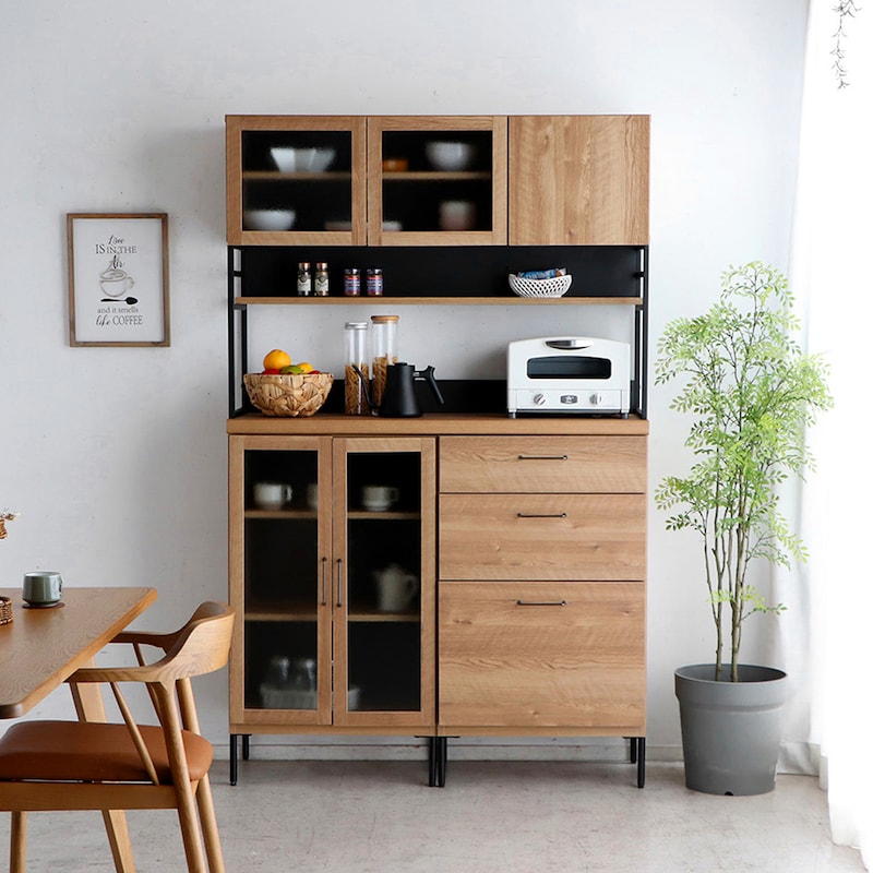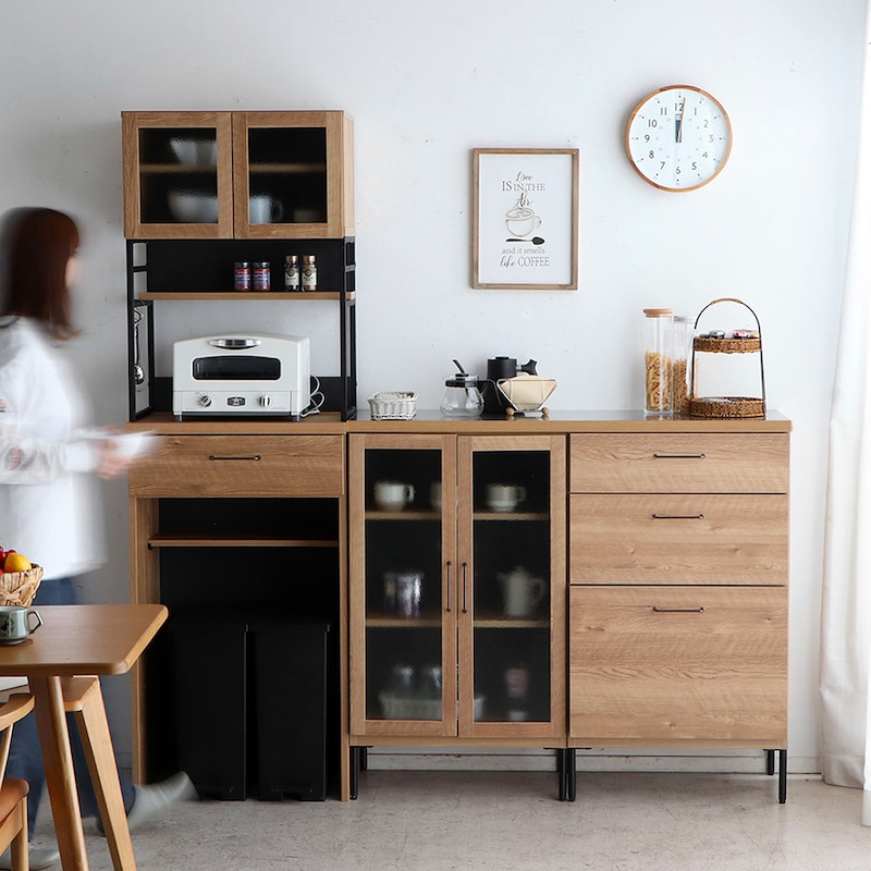 ●主材/前板:強化プリント紙化粧繊維板、その他:プリント紙化粧繊維板、ガラス:4mmガラス(ガラス扉・ガラス扉オープンのみ)、スチール(<粉体塗装>ガラス扉スチールフレームのみ)、麻(麻扉のみ)、ステンレス(ステンレス天板のみ)
