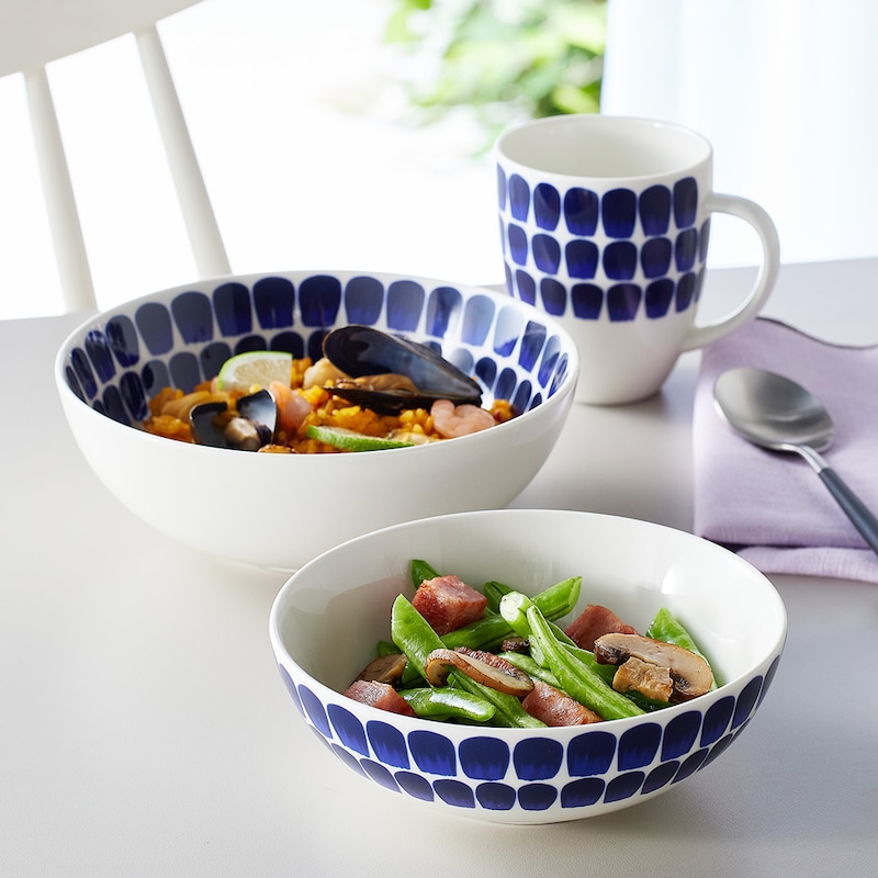手書き風の模様と朝から晩まで24時間使えることをコンセプトとした機能的なデザインで和洋中からエスニックまで様々なお料理と合わせてお使いいただけます。