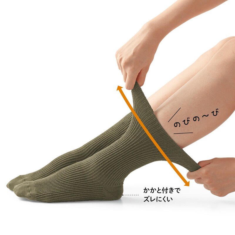 綿混のやさしいぬくもりと、締め付け感のないゆったりとした履き心地を同時にかなえたクルー丈のソックス。