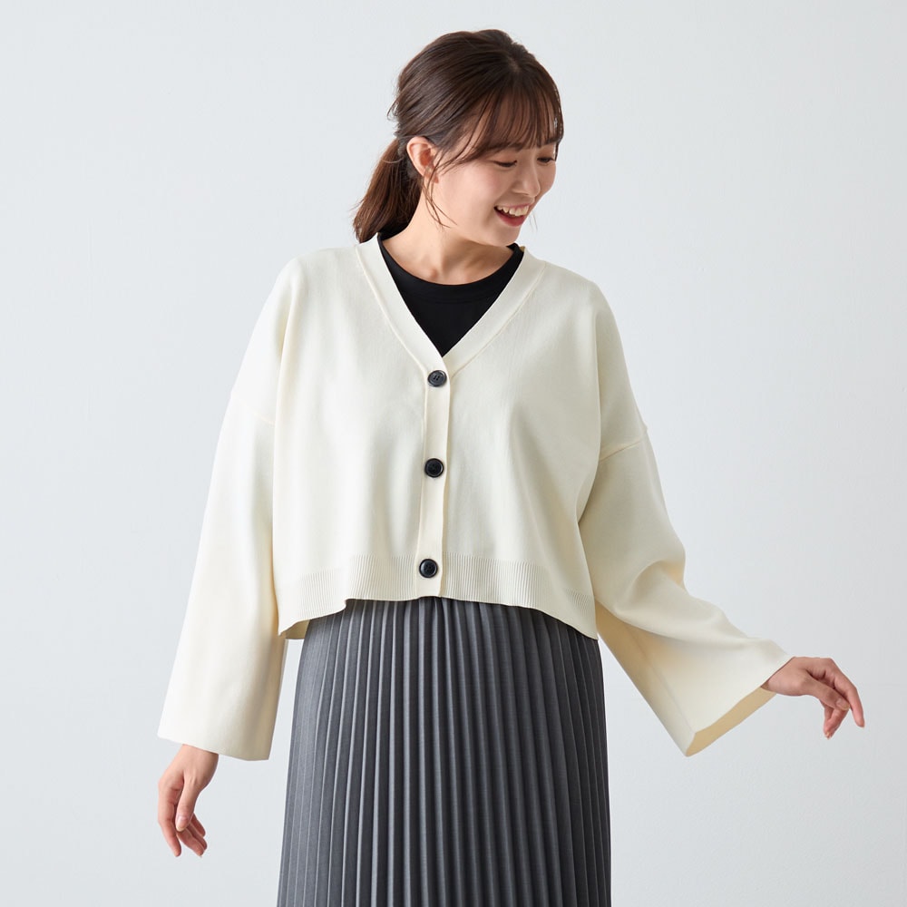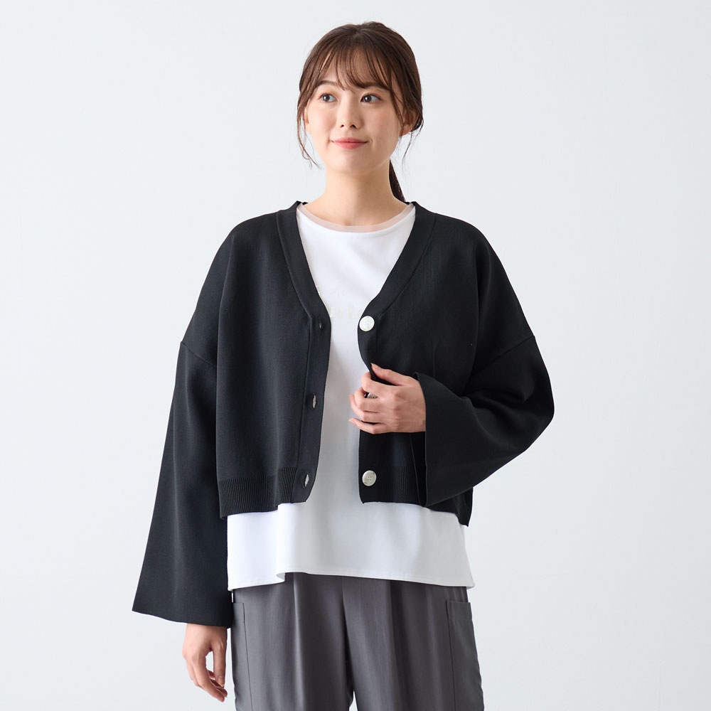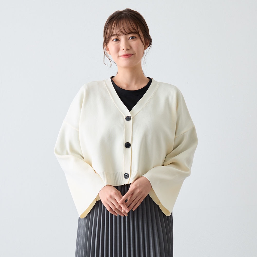 ショート丈でパンツ、スカートなど合わせやすいです。色違いで購入予定です。ただ、袖が広がっているので水仕事はしづらかったです。