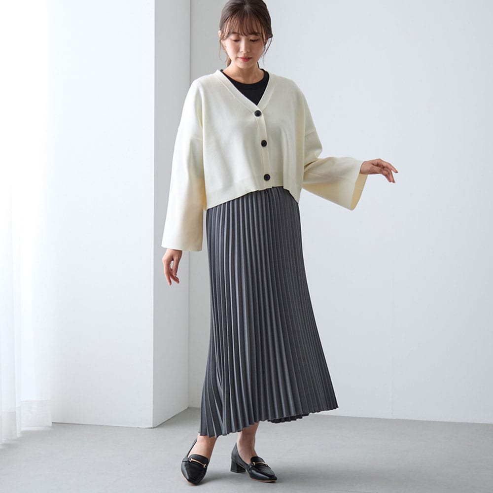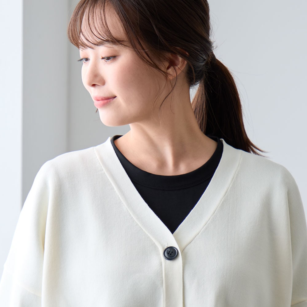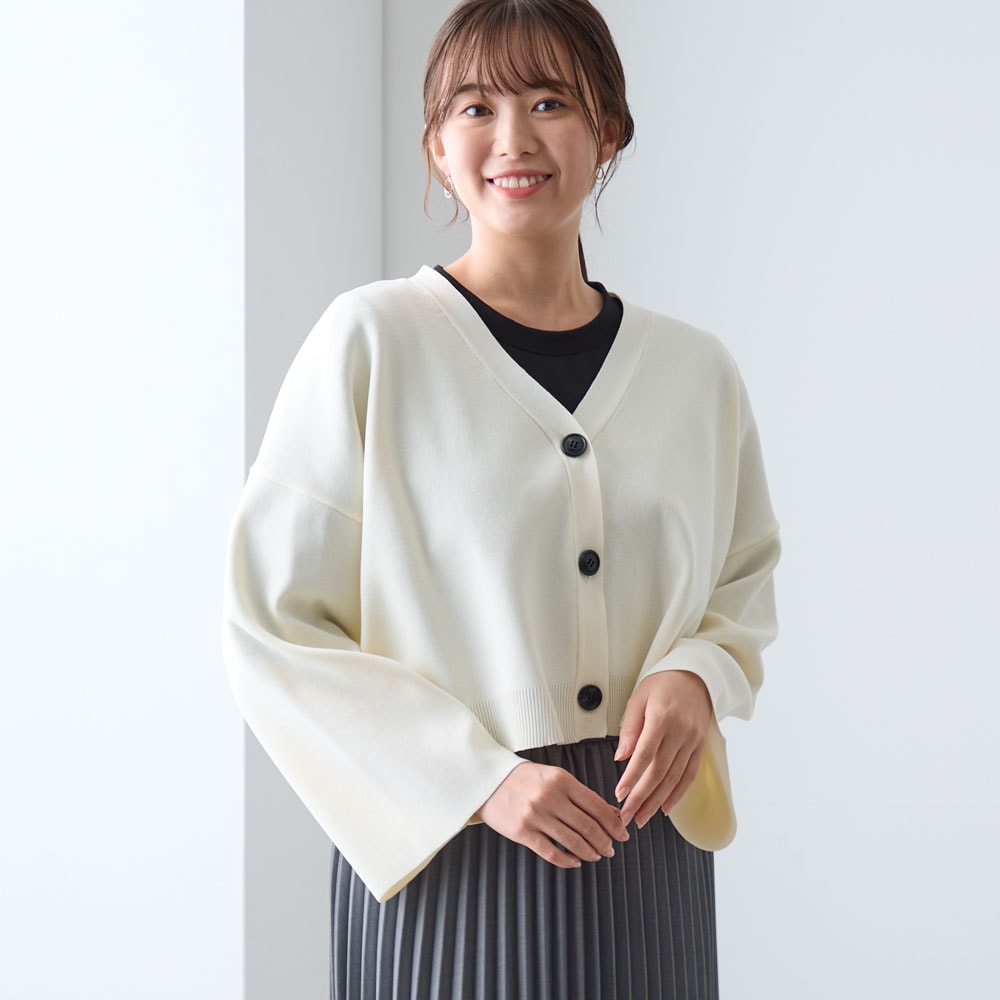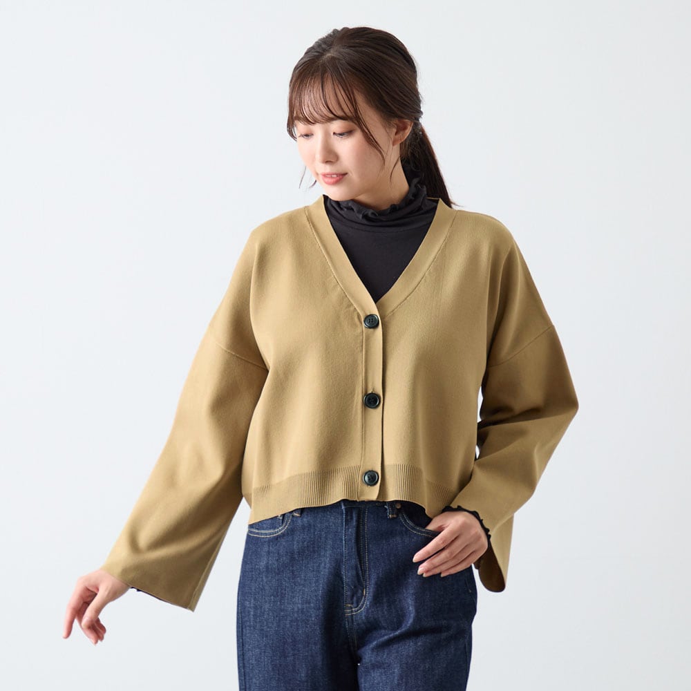 ショート丈でパンツ、スカートなど合わせやすいです。色違いで購入予定です。ただ、袖が広がっているので水仕事はしづらかったです。