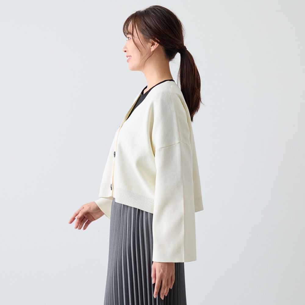 ワンピースをよく着るので上着を色々と探してて購入した1つでした。セールで買えて良かったです。出番が来るを楽しみにしたいですが、自分は太ってて腰・お尻が太いので、ショート丈なぶん背後から見るとその太さが目立つかもしれません。