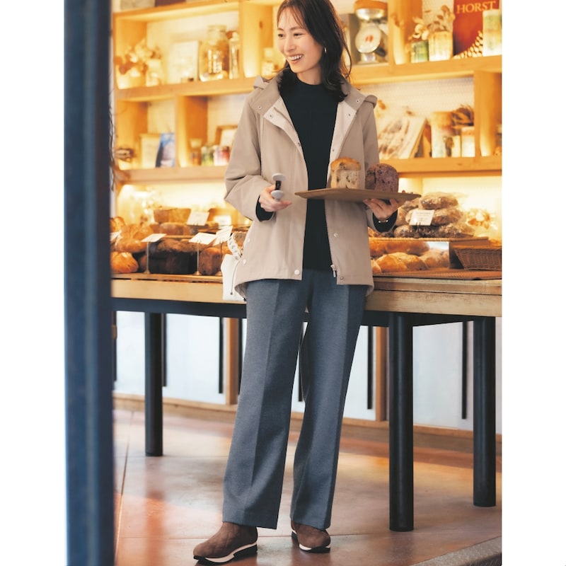 ふだんパンプスは23.5cm、ブーツやスニーカーは24cmを履きますが、Mサイズでもやや大きく、中敷きを入れて厚手の靴下でちょうどな感じです。脱ぎ履きがスムーズにできて、ボア付きで暖かいです。クッション性があって履き心地も良く、パンツでもスカートでも合わせやすくて気に入っています。
