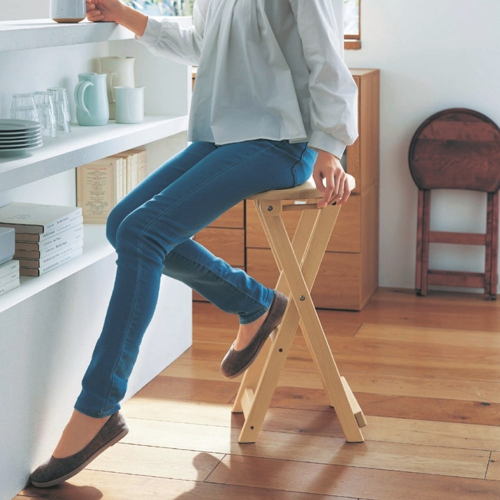 すぐに腰掛けたくなるお年頃。キッチン用に購入。餃子を包む時、あんこを炊く時、長い時間キッチンにいなきゃいけない時に重宝しています。しっかりした作りなので長く使えそうです。