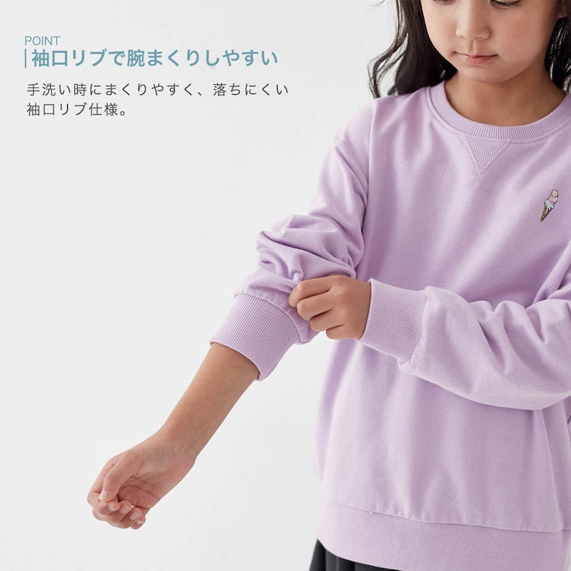 私の好みだと、もう少し明るい色のほうが好きですが、ワンポイントもあって、子供も喜んで着てくれます。綿で、裏起毛でも無いので、着心地も良さそうです。袖がリブなのも良いです。
