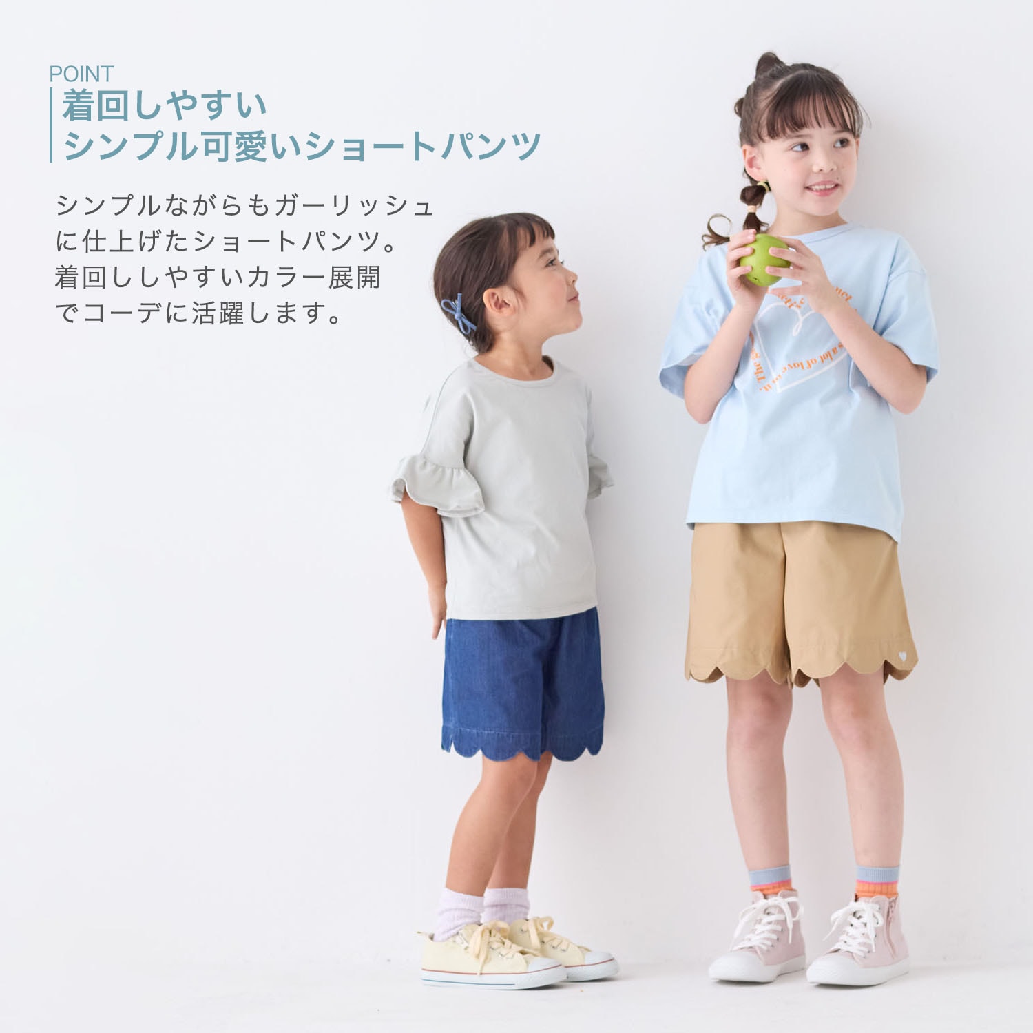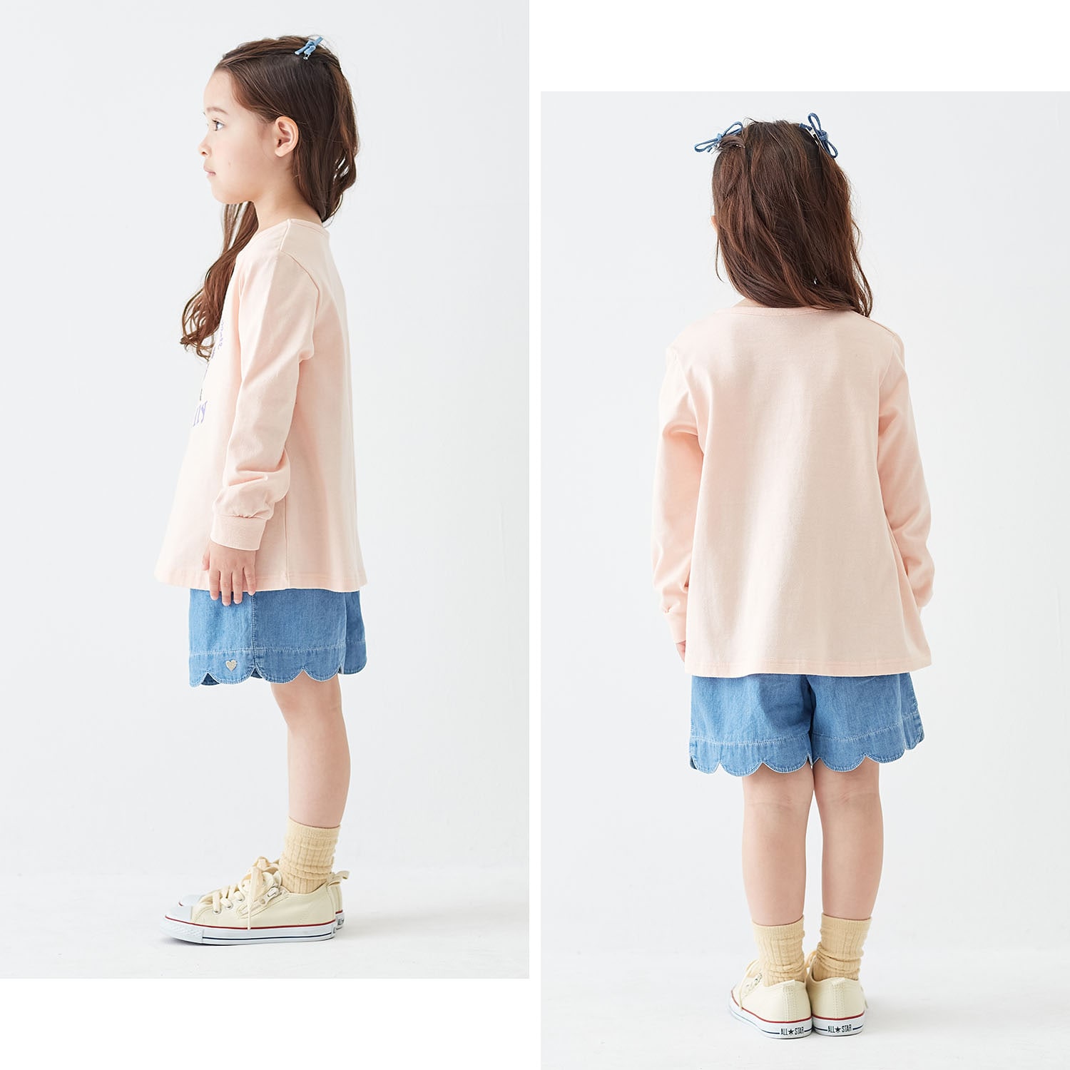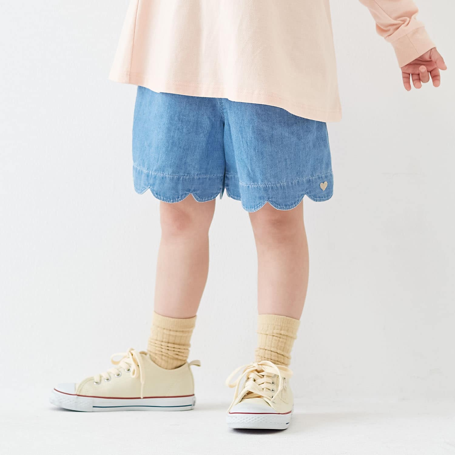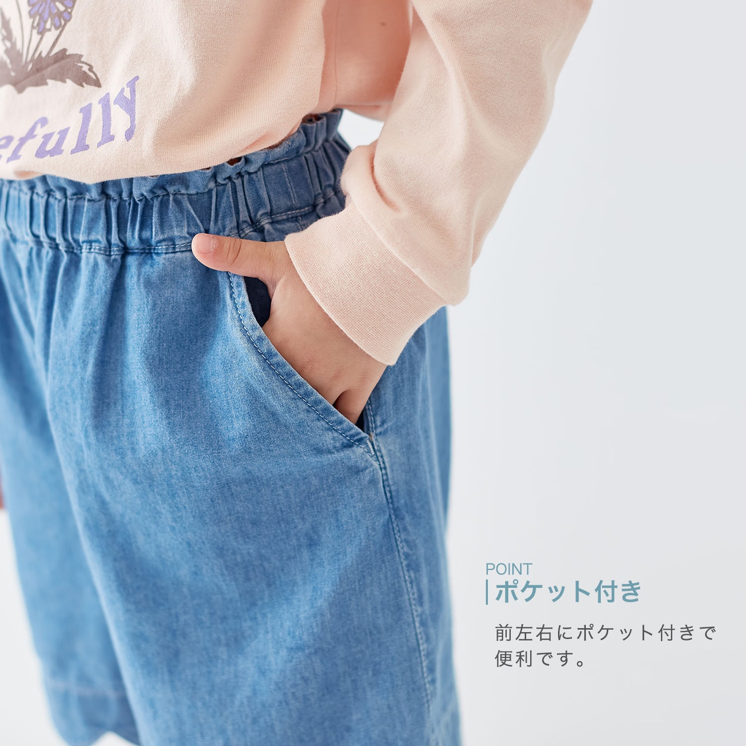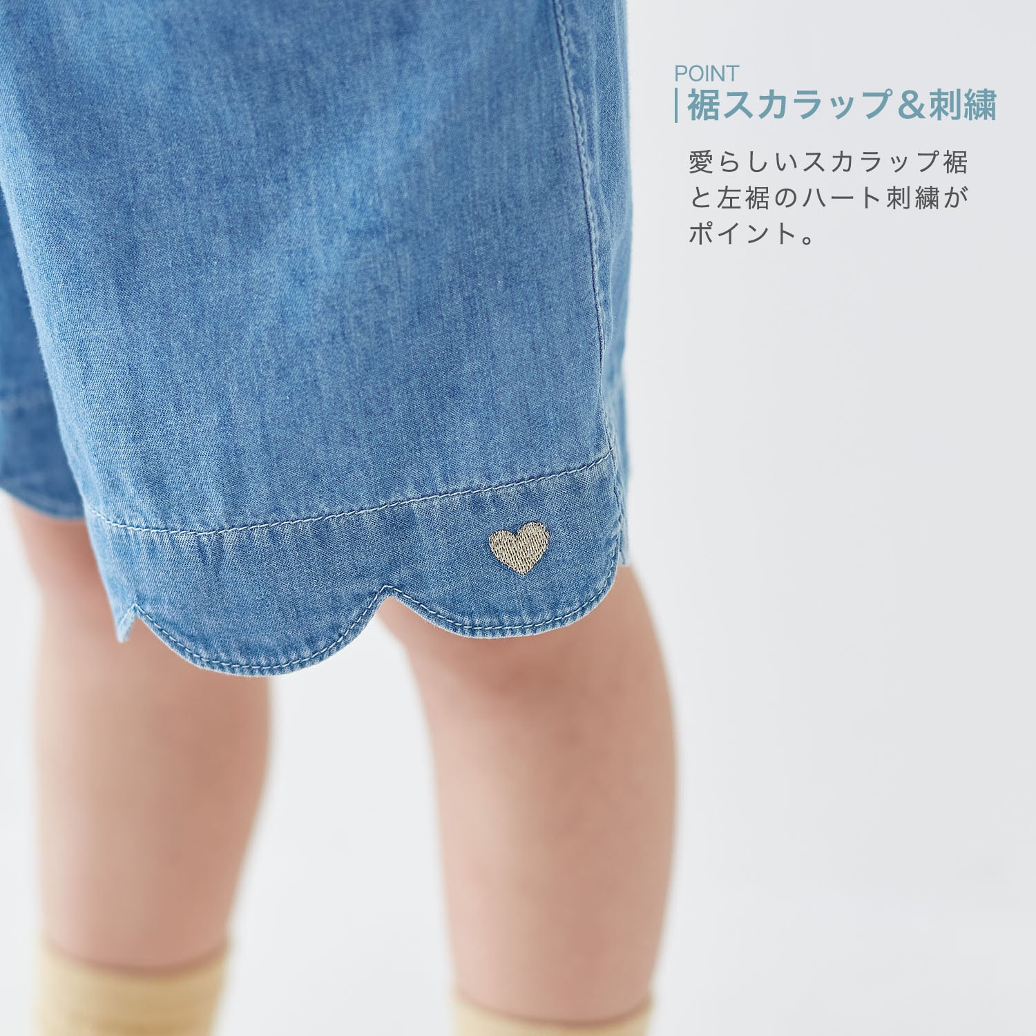 レギンスと合わせて春先から着られるかなぁと思いましたが、生地が薄くて春先にはまだ早そう。逆に真夏でもはけそうです。お尻ポケットがないのもちょっと残念ですが、ない方がスカートっぽくてかわいいとも言えます。