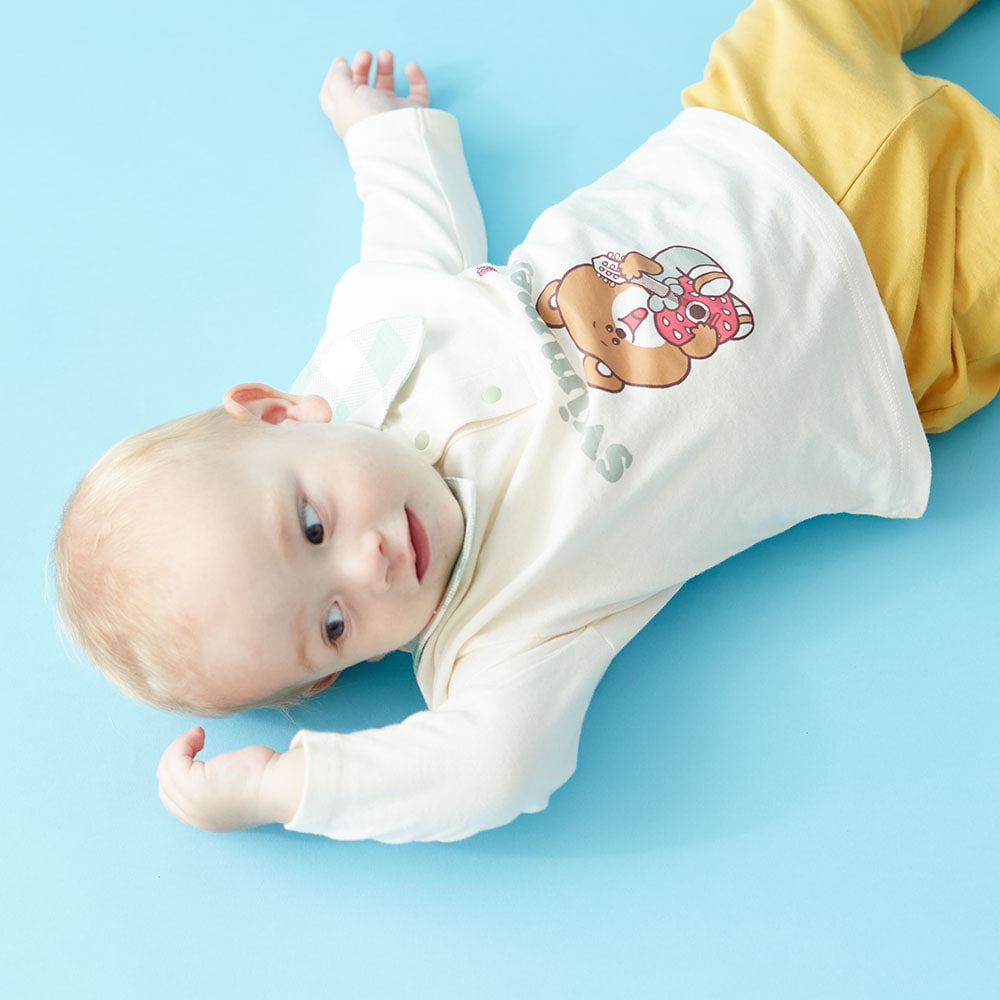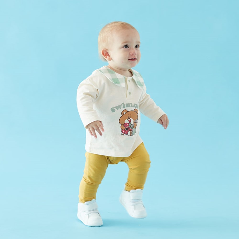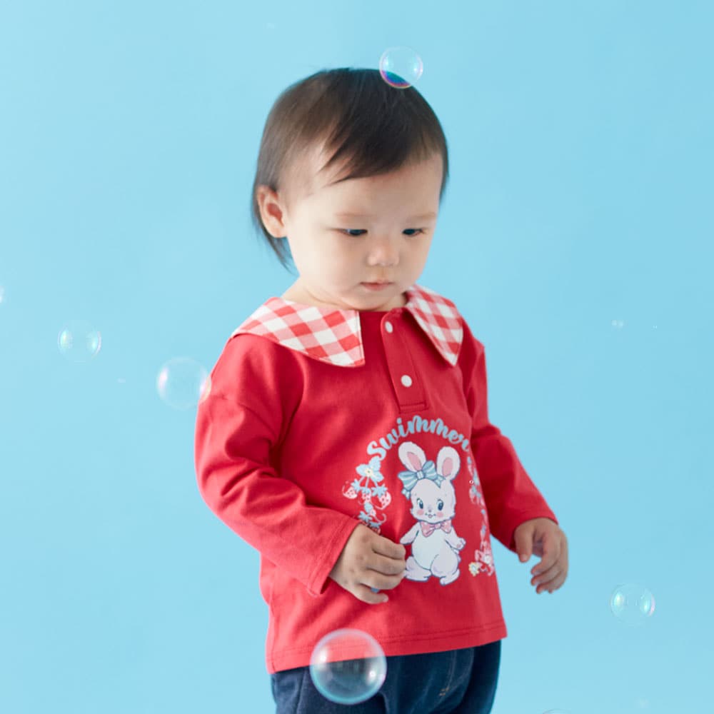 小さいってだけで、クセのあるデザインも着こなせちゃう時期です。洋服の好みが出てこないうちは、全力で押し付けています笑!レトロな絵柄がとってもかわいい。襟も顔まわりをジャマすることはありません。スイマーのロンパースはサイズ感小さめでしたが、こちらとトレーナーの方はそういうこともないのでサイズを上げる必要はなさそうです。もう少し大きくなったら、買い足したスイマーのポシェットを下げてお出かけしたいです。