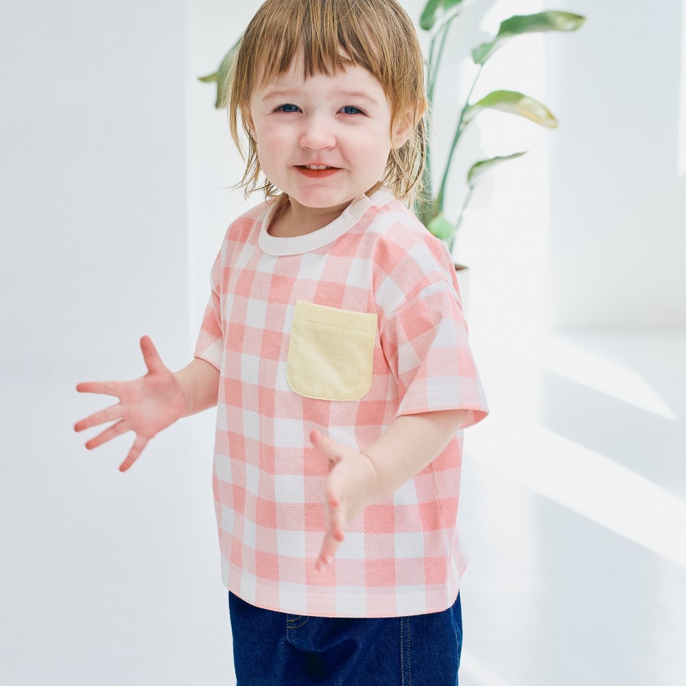 ママがこのポケット付きイエローカラーのTシャツを一目見て、気に入って、注文しました。