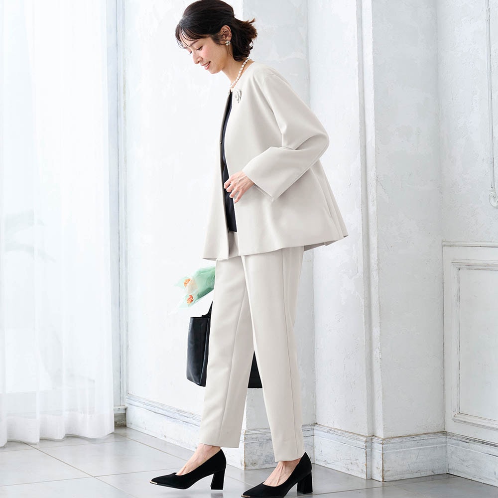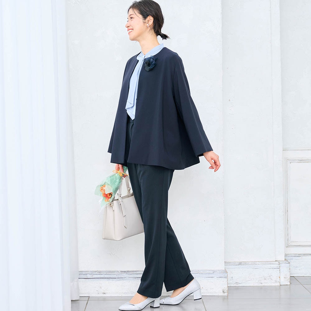 入学式用に購入しました。Lサイズを選んだところ、ジャケットはブカブカでパンツはキツめでした。パンツの生地は薄めなので、下着やポケットの型が目立つような気がします。しかしもっと足が細い方だと、上のジャケットももっとブカブカになるかと思います。上下でサイズを選べたらよかったです。