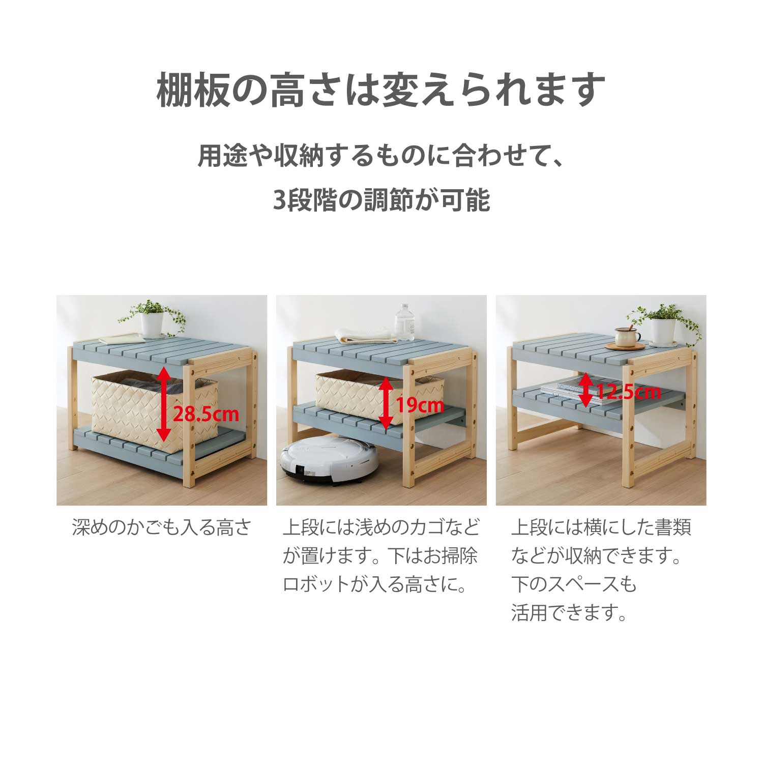 ●下段の棚は可動式で、インナーボックス等に合わせて高さ調整が可能