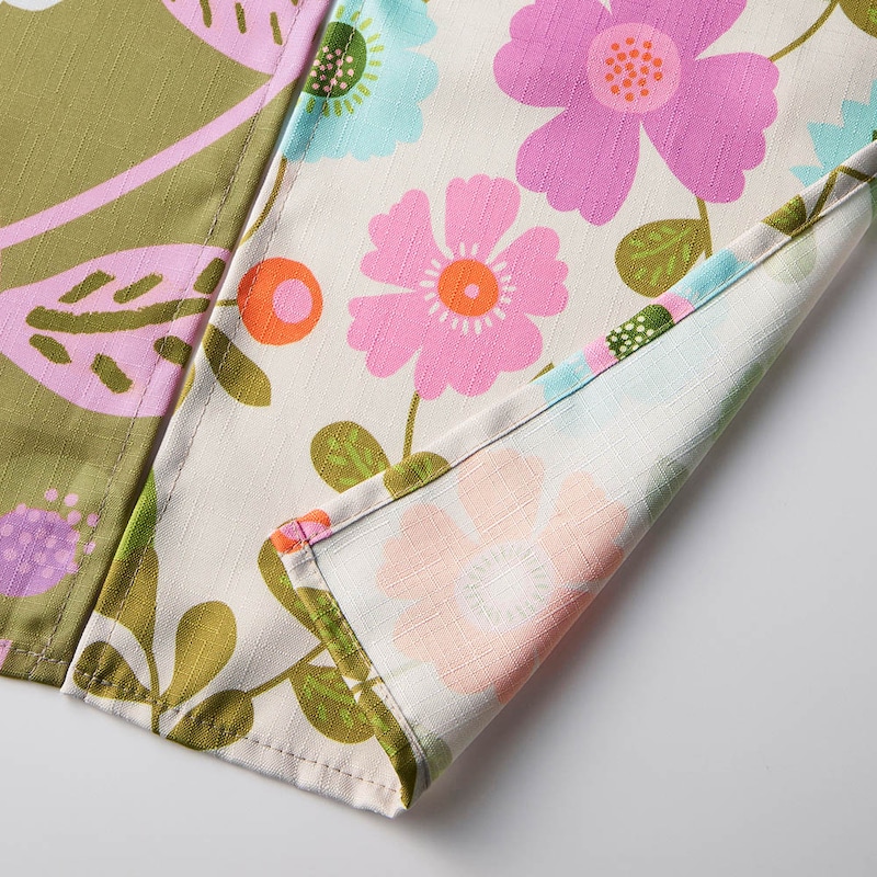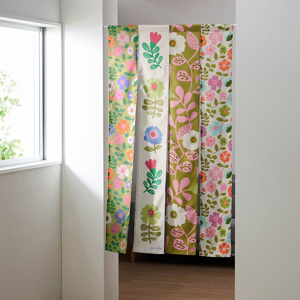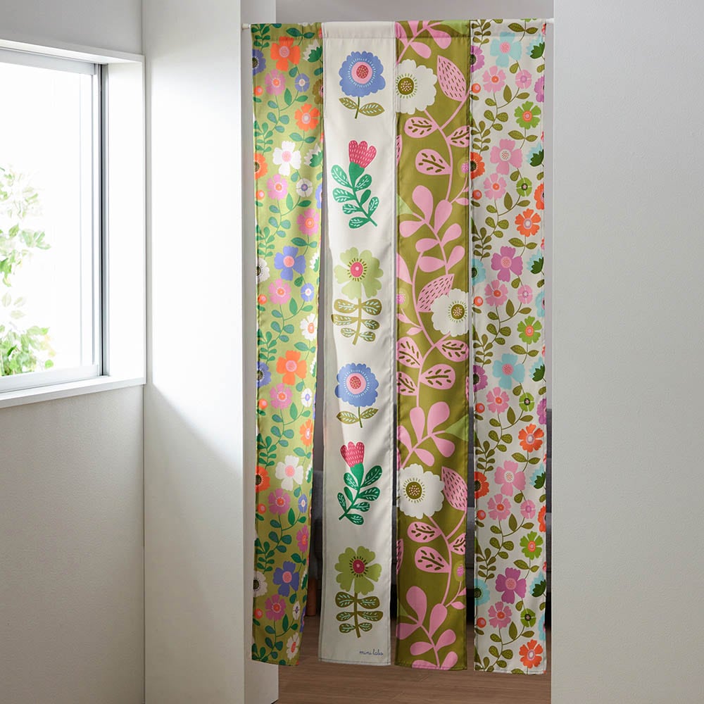 ・デザインの異なるプリント生地を4枚つないだのれん